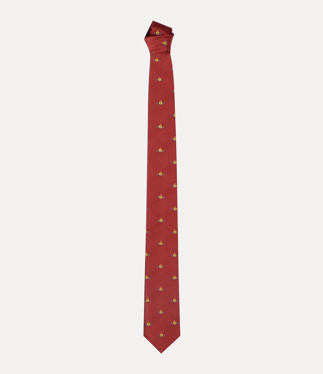 Vivienne Westwood silk tie offers the house’s multi-coloured orb jacquard across the design and features a wide blade that falls into a classic pointed tip.