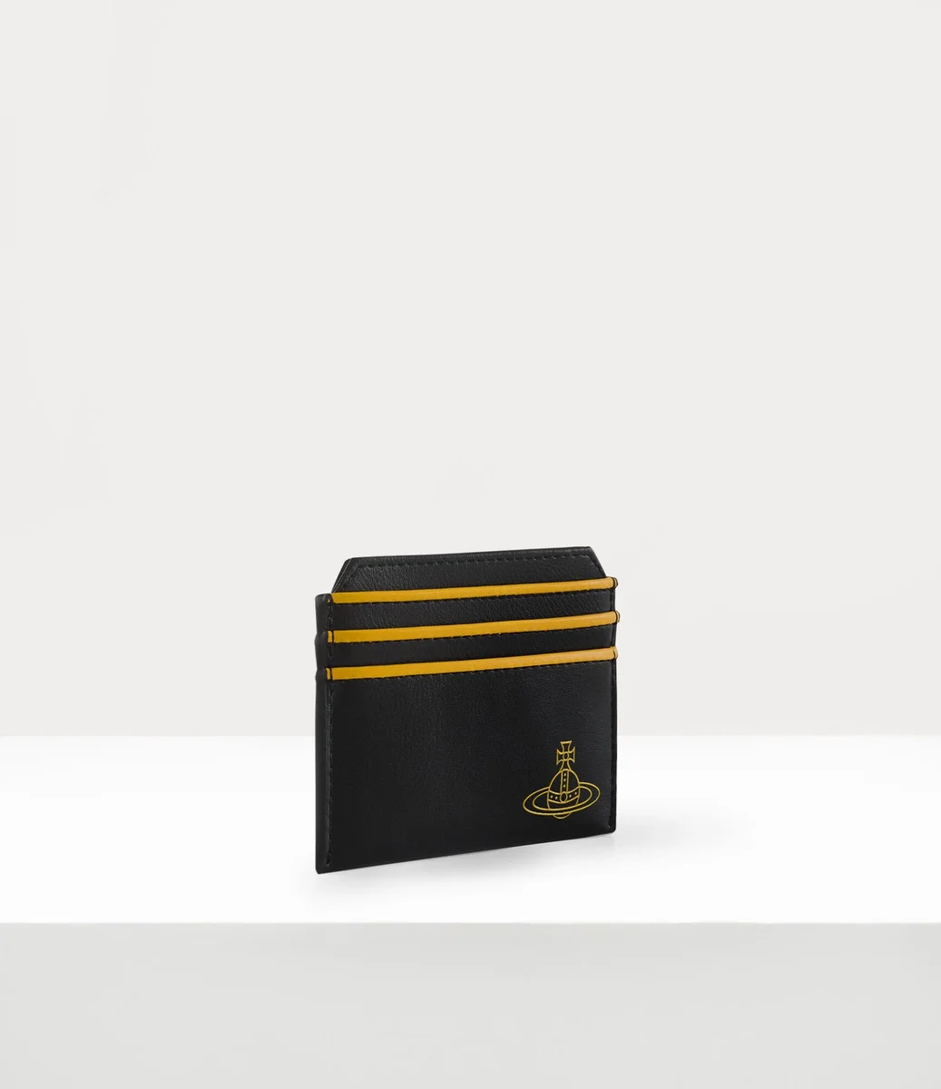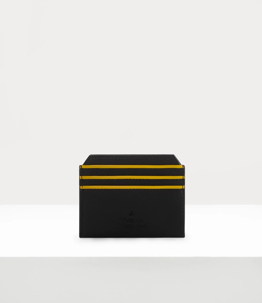 Vivienne Westwood Slim card holder is reimagined in PU leather with yellow piping inspired by the house’s 1984 ‘Hypnos’ collection.