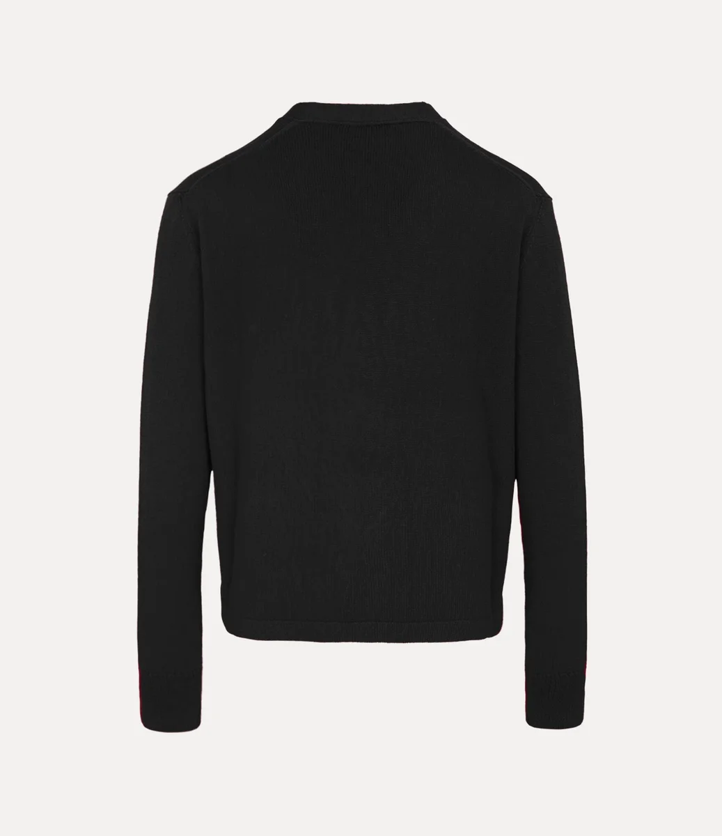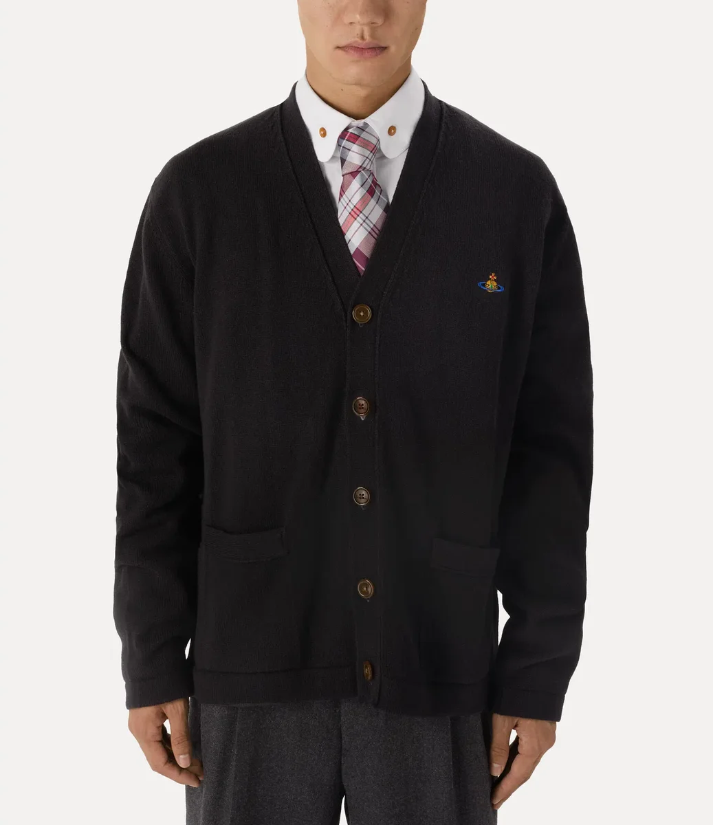 Our archive Alex cardigan has been revamped this season, offered in a soft cotton-cashmere blend. The piece features a button-front design, complete with a V-neck silhouette and an orb detail on the left-hand side of the chest – synonymous with Vivienne’s vision of launching tradition into the future.