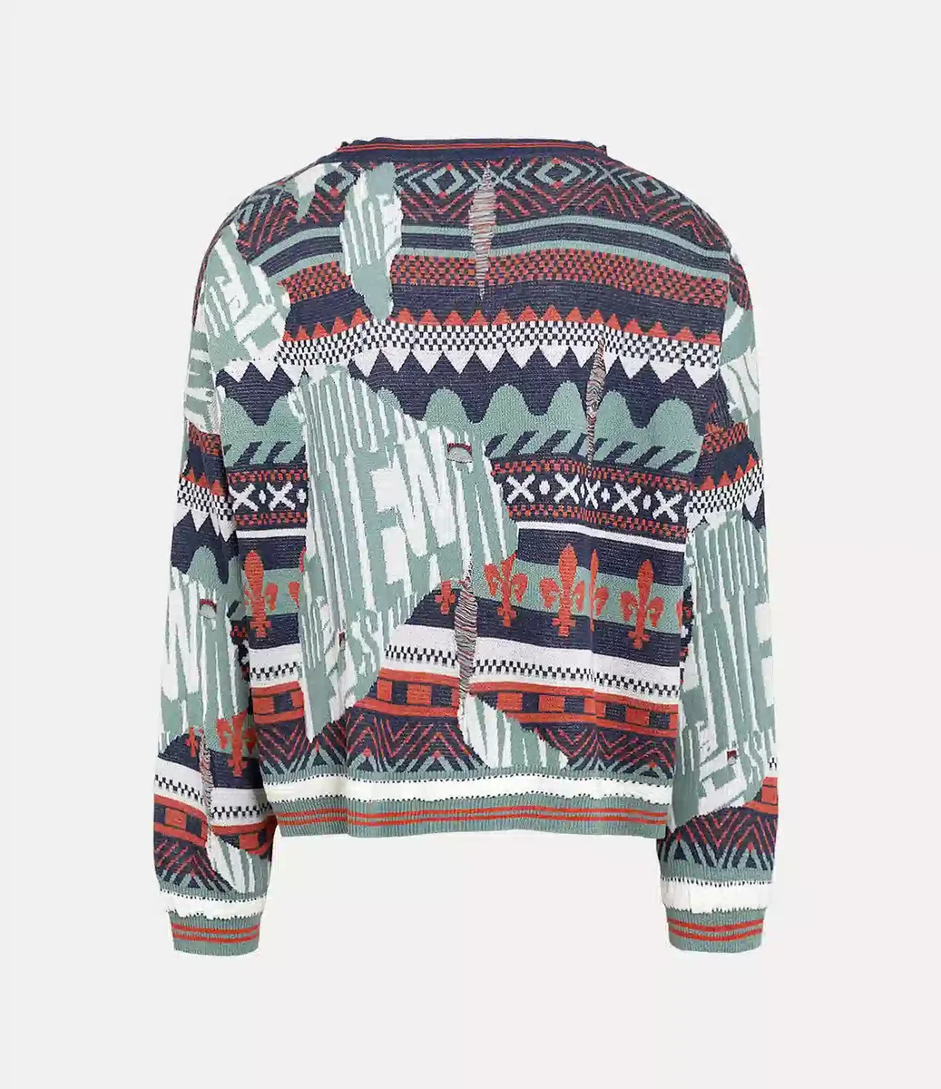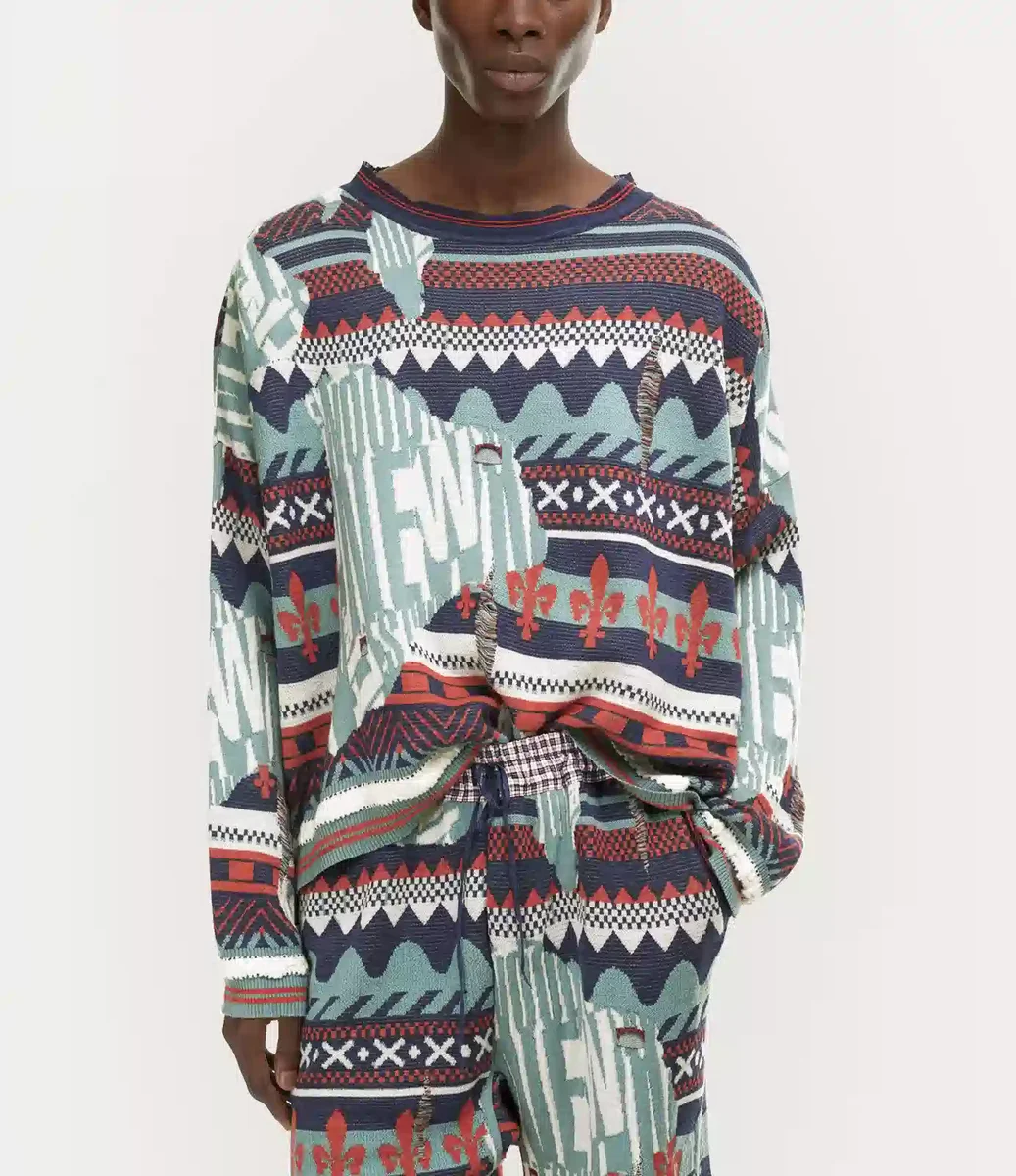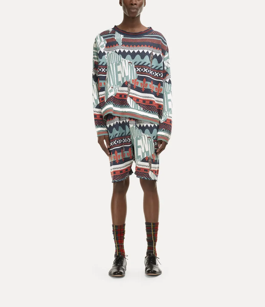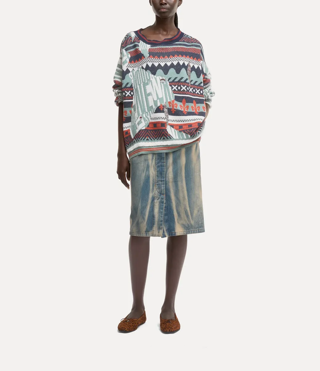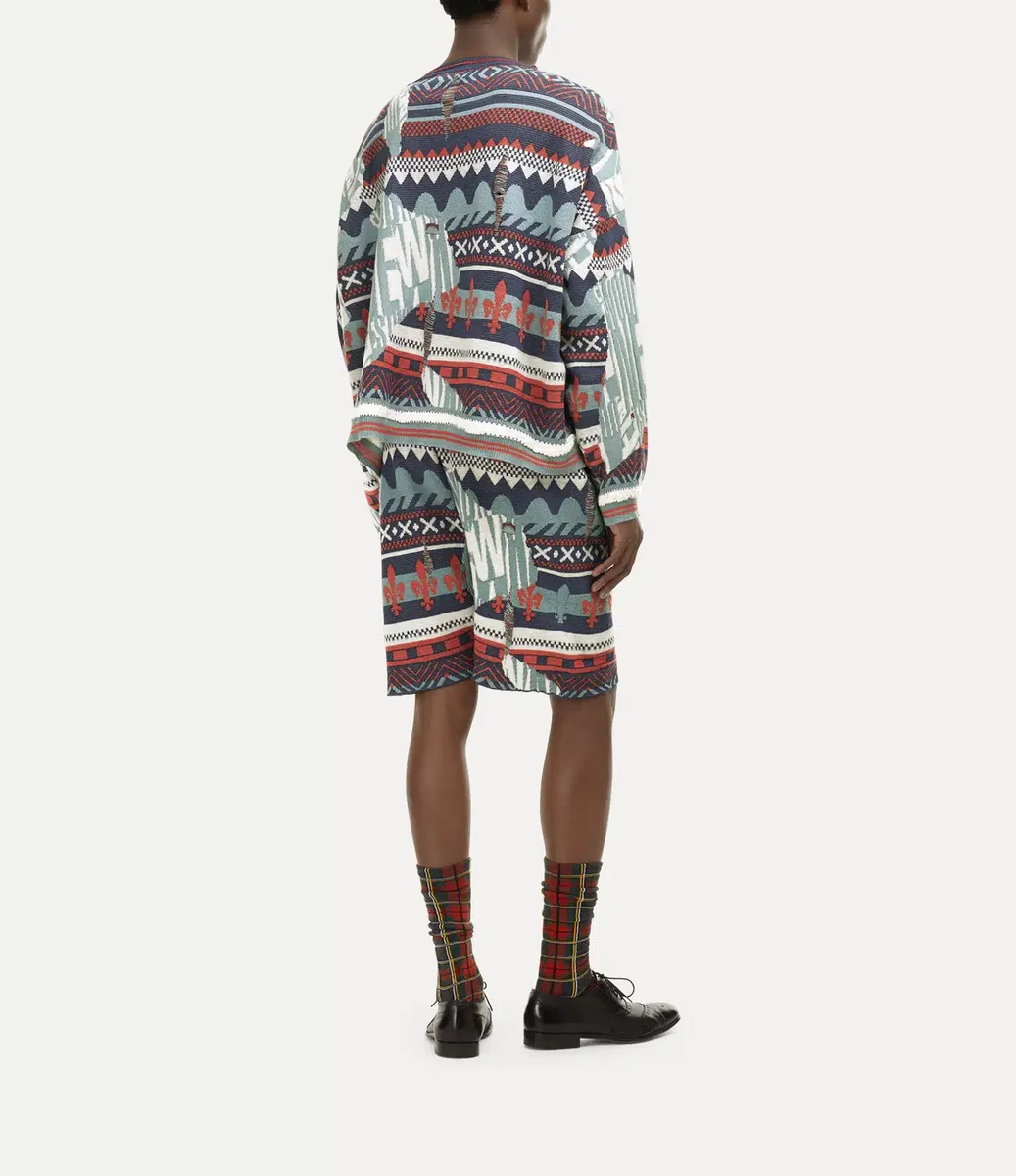 Our Broken Fair Isle jumper features this season’s Fair Isle jacquard, woven with signature house iconography and faded sections where the ‘Vivienne Westwood’ lettering motif subtly emerges. The piece is complete with intricate distressed details, create a deconstructed aesthetic.