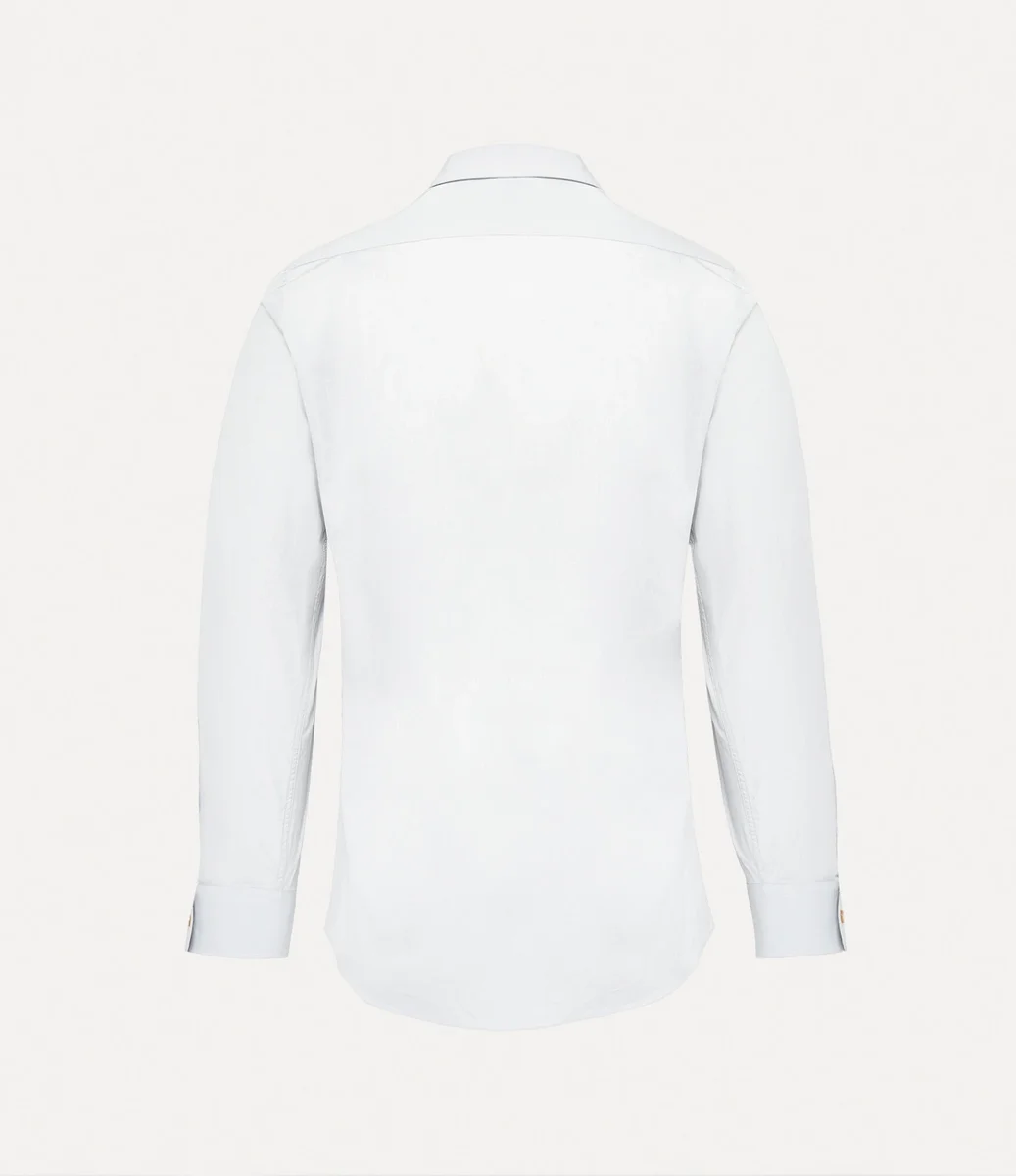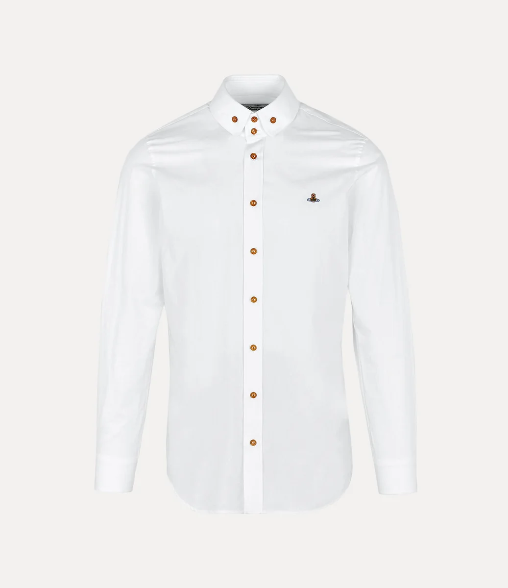The silhouette of the Two Button Krall shirt draws inspiration from an archival design, featuring Vivienne’s iconic two-button collar. The piece offersour signature orb embroidery on the left-hand side of the chest – synonymous with Vivienne’s vision of launching tradition into the future.