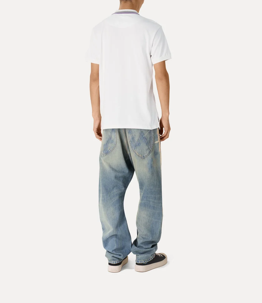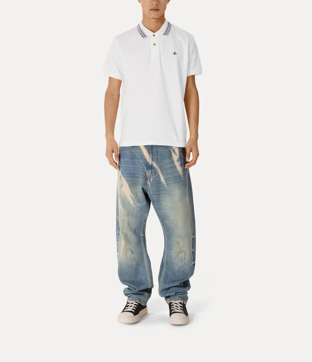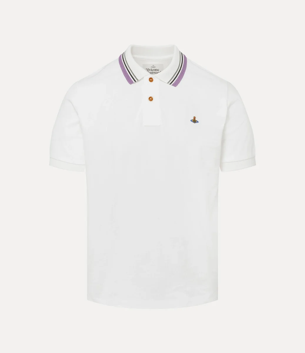 Vivienne Westwood Classic polo in soft cotton features a contrasting collar, complete with multi-coloured stripe details.