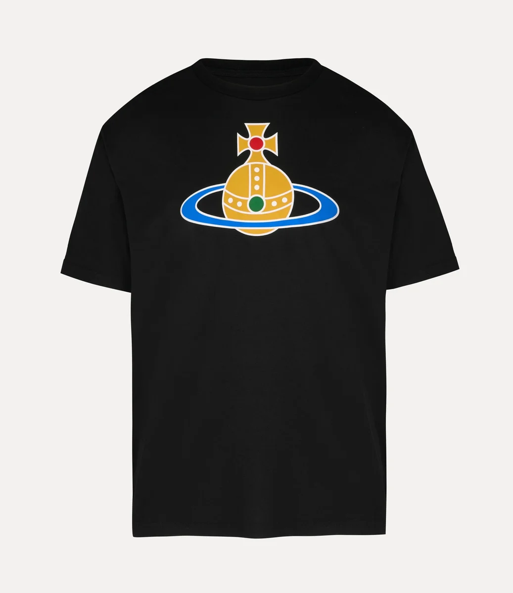 Our Oversized Orb Classic t-shirt is crafted from lightweight cotton, shaped with a crew neckline, short sleeves, and a straight hem. The piece features a printed multi-coloured orb motif across the chest, synonymous with Vivienne’s vision of launching tradition into the future.