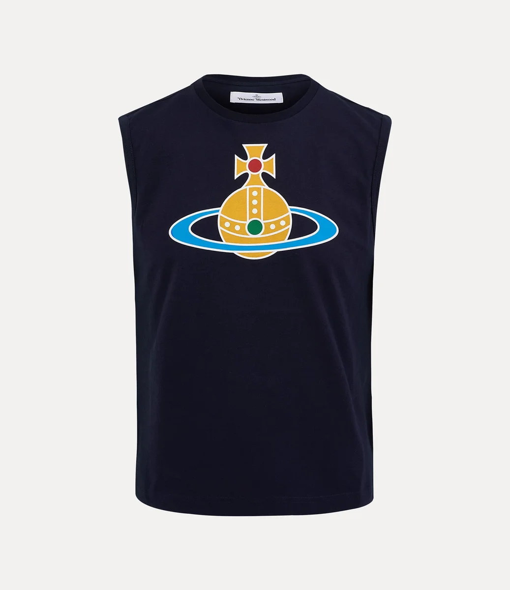 Our Oversized Orb Muscle vest is crafted from lightweight organic cotton and shaped with a classic crew neckline framed by ribbed trims. Falling into a straight hem, the piece is finished with an enlarged multi-coloured orb motif printed across the chest, capturing Vivienne’s vision of taking tradition into the future.