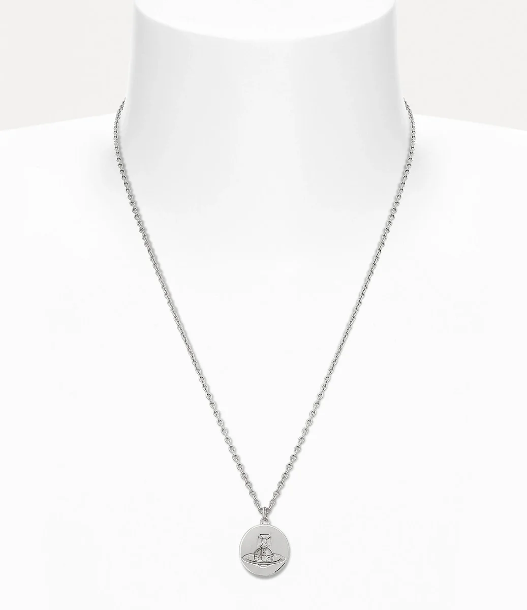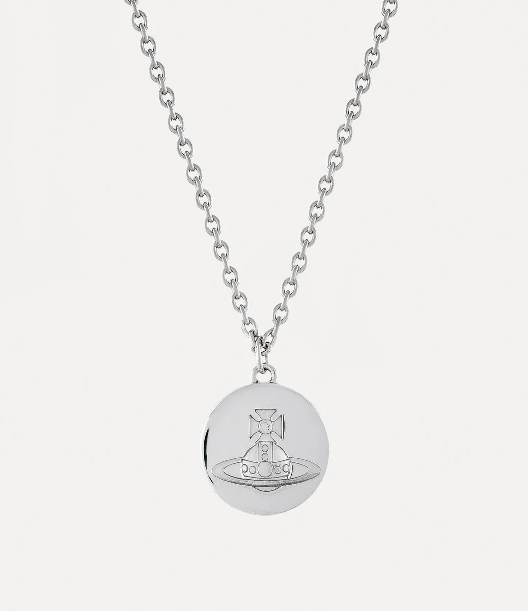 The Man. Janus Pendant necklace features a platinum-plated silver finish, shaped to form an intricate oval silhouette. The piece adopts an all-metal design, complete with an engraved lettering motif at the back, while the front receives a debossed orb at the front – synonymous with the house’s ethos of linking the past to the future.