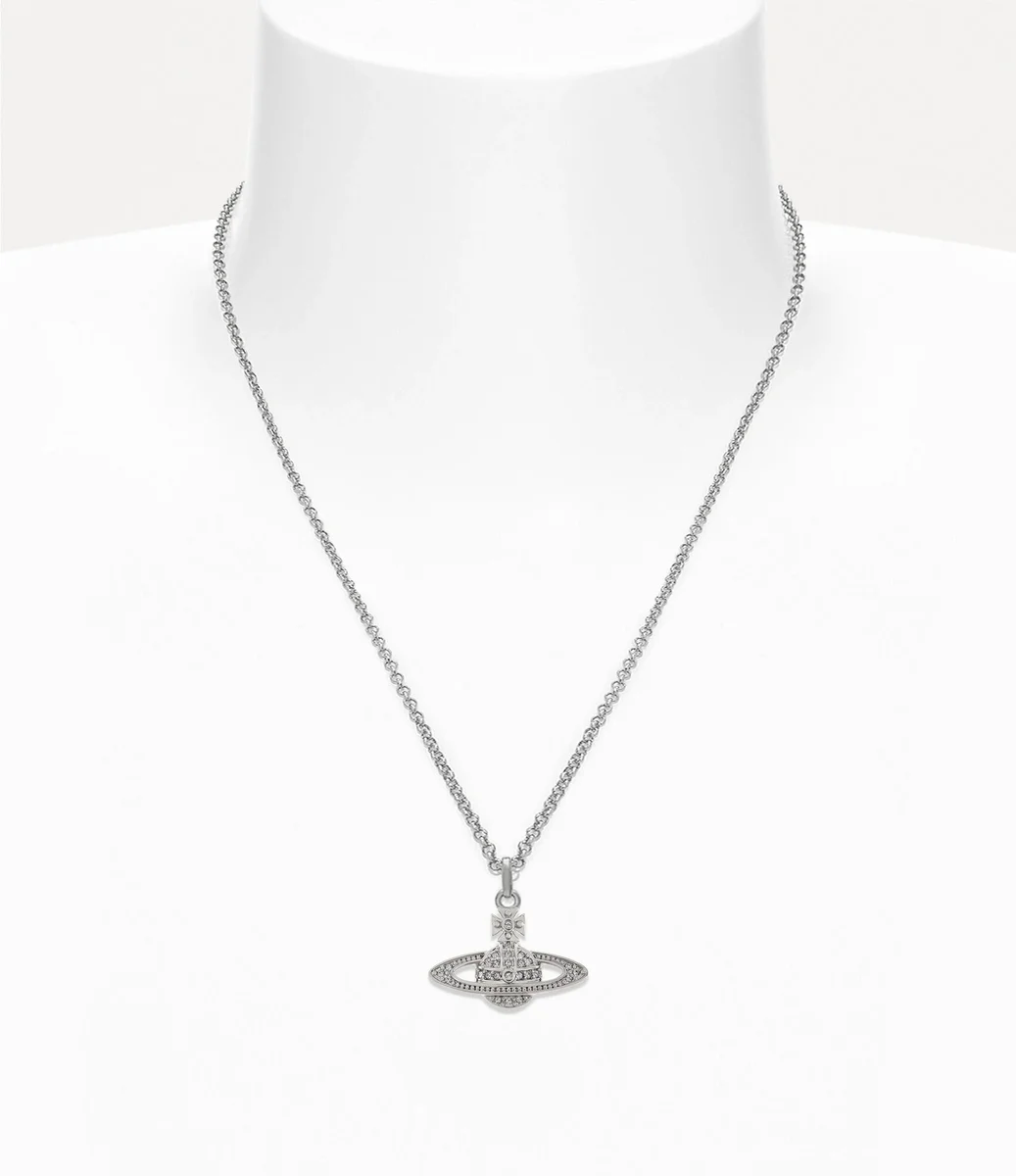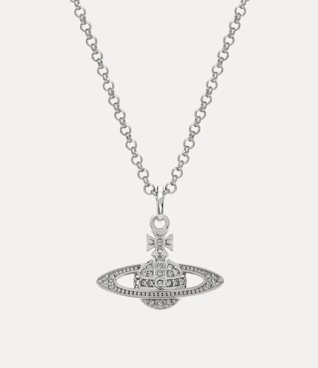 The house’s orb silhouette is synonymous with Vivienne’s vision of taking tradition into the future. The Man. Mini Bas Relief Orb Pendant necklace receives the orb shape, adorned with white crystal details and silver-tone plating.