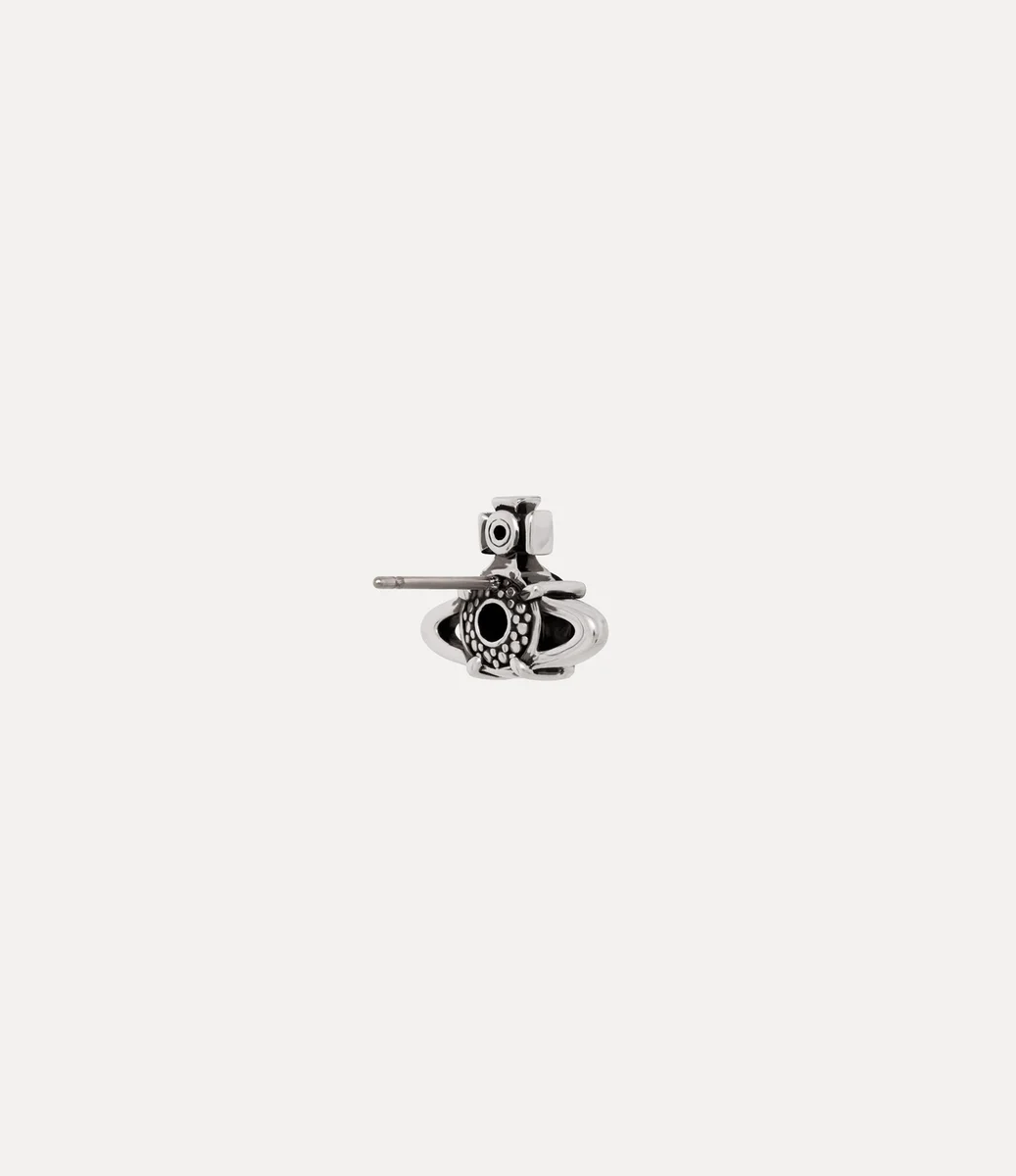 Our signature Man. Reina Single stud earring is crafted from silver-tone metal with an oxidised finish for an antique-effect finish. The design is set with a round-cut black gemstone at the centre of the orb and cross top, reflecting Vivienne’s vision of launching tradition into the future.