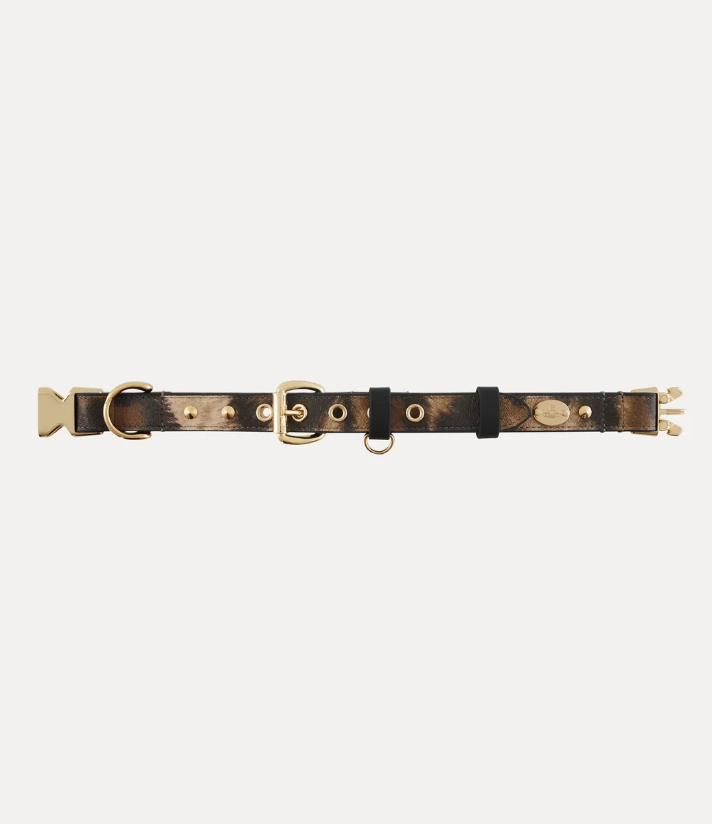 Vivienne Westwood Dog collar in PU is adorned with the bold leopard artwork, finished with classic gold-tone hardware.