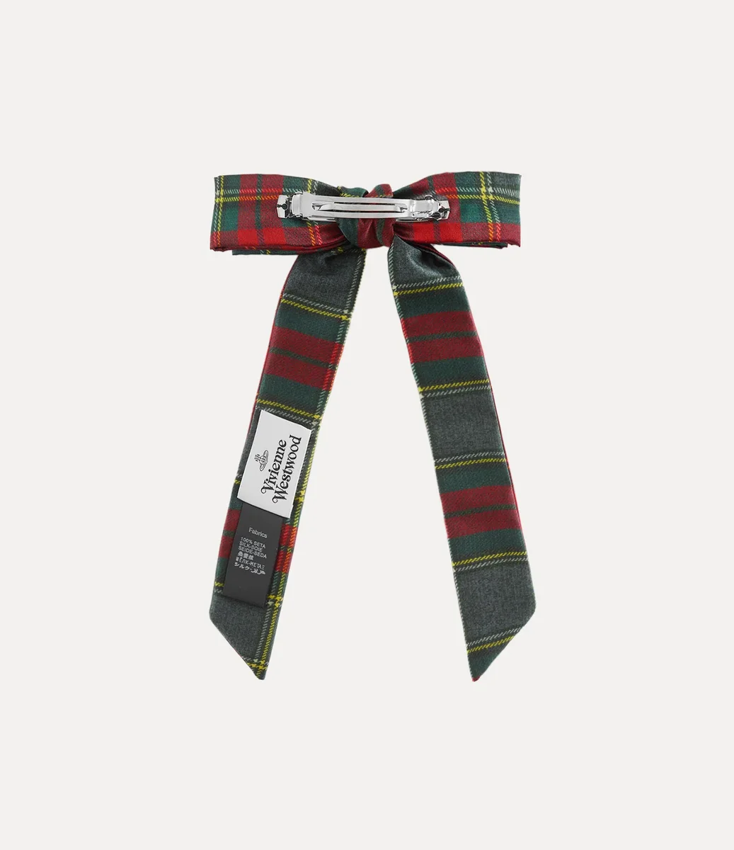 The Flyes hair clip features an oversized bow-shaped silhouette, adorned with the ‘Scarlet’ tartan motif. The layered bow design is hand-finished with classic orb embroidery in multi-coloured thread, reflecting the house’s ethos of linking the past with the future.