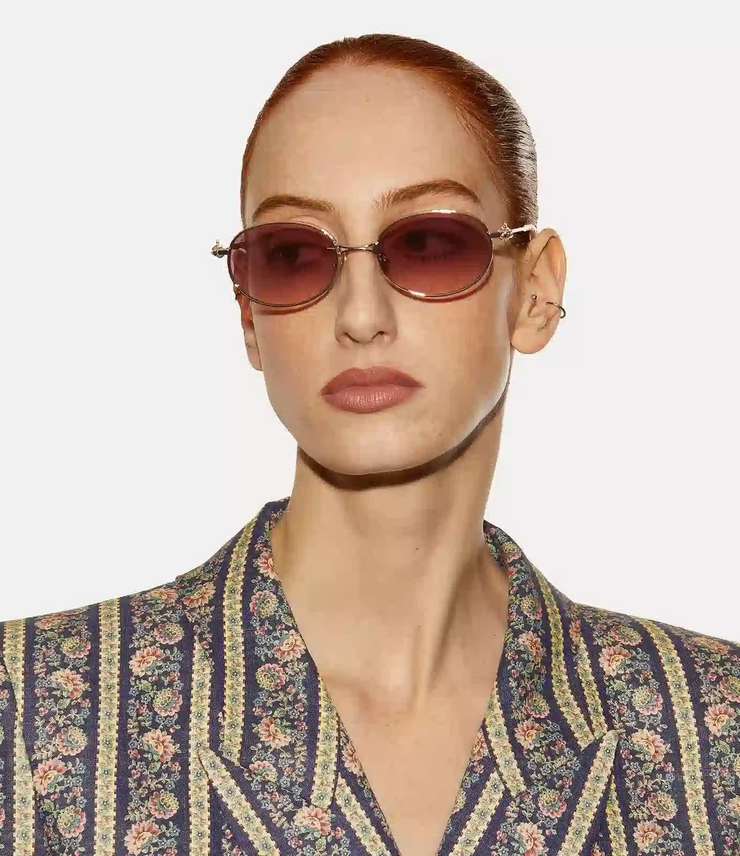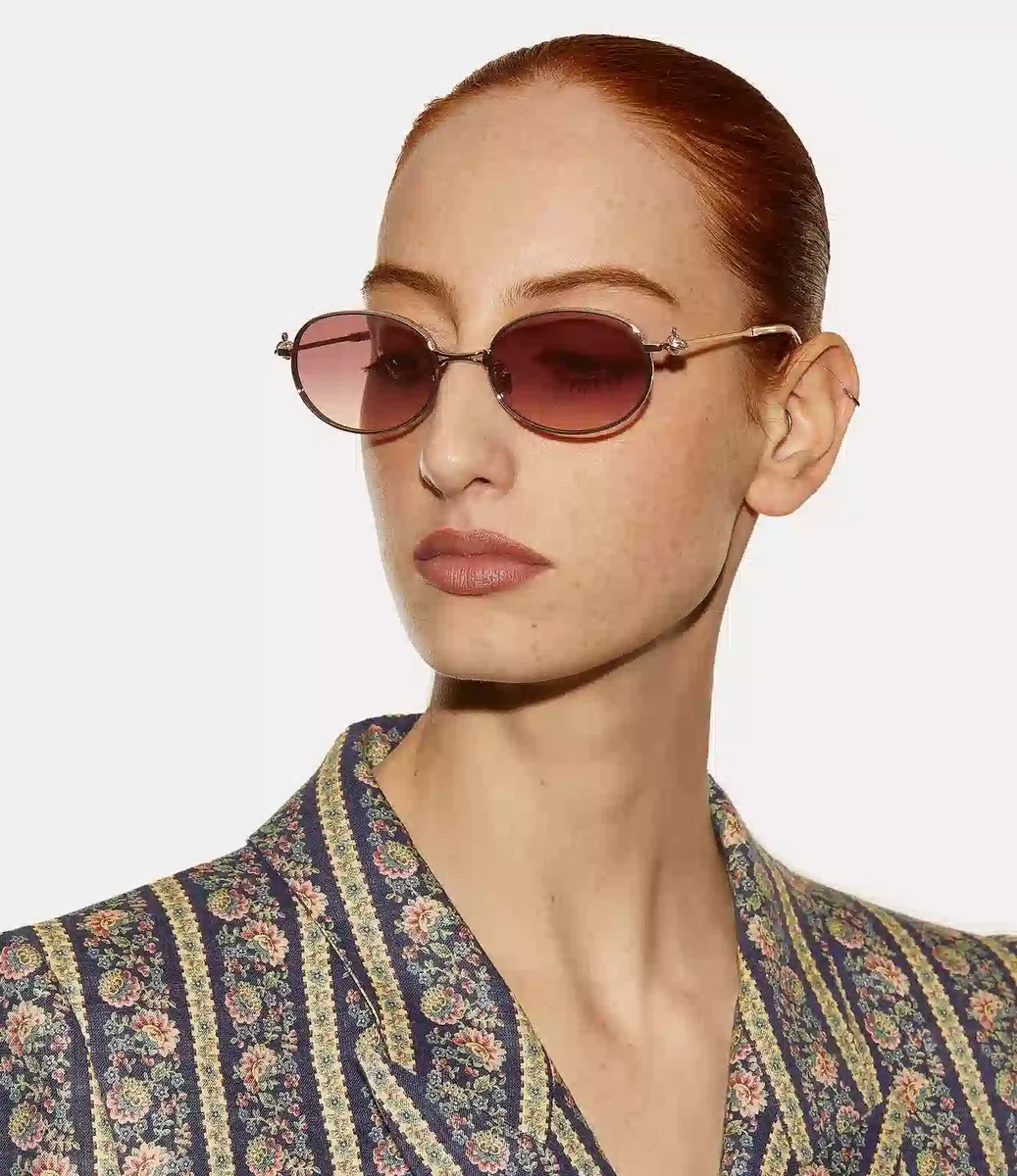 Vivienne Westwood Hardware Orb Oval sunglasses feature an intricately engraved gold-tone metal structure, along with the three-dimensional orb at each temple.