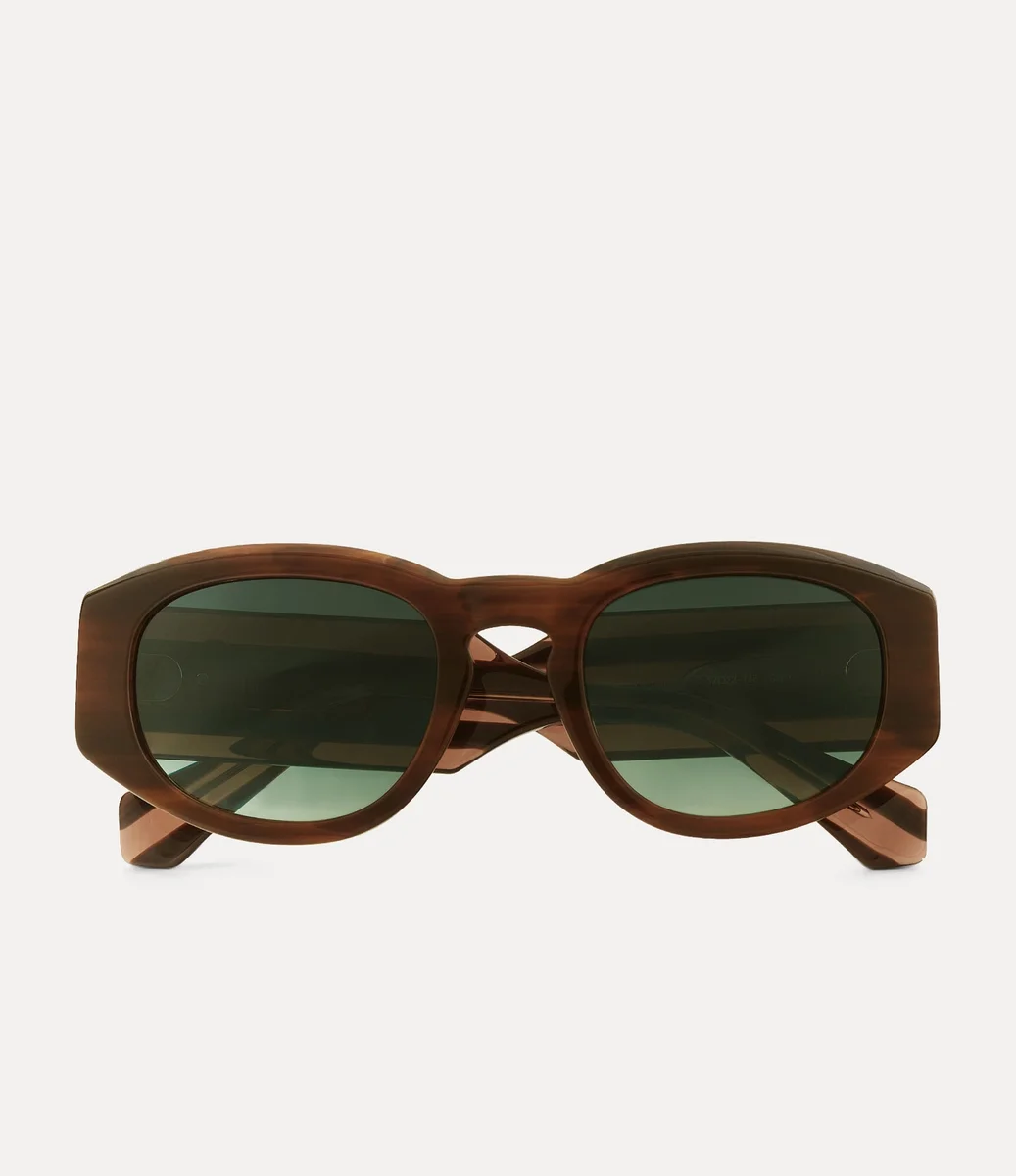 Vivienne Westwood Reed sunglasses feature vintage-inspired oval frames and horn-effect trims, with a two-dimensional metal orb detail at the temples.