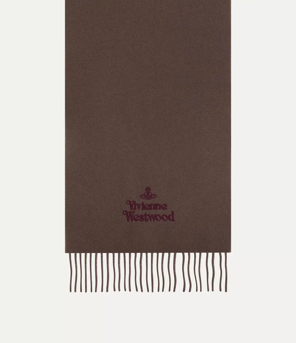 Vivienne Westwood Embroidered scarf features a soft woollen silhouette, branded with the house’s lettering motif at the bottom of the design.