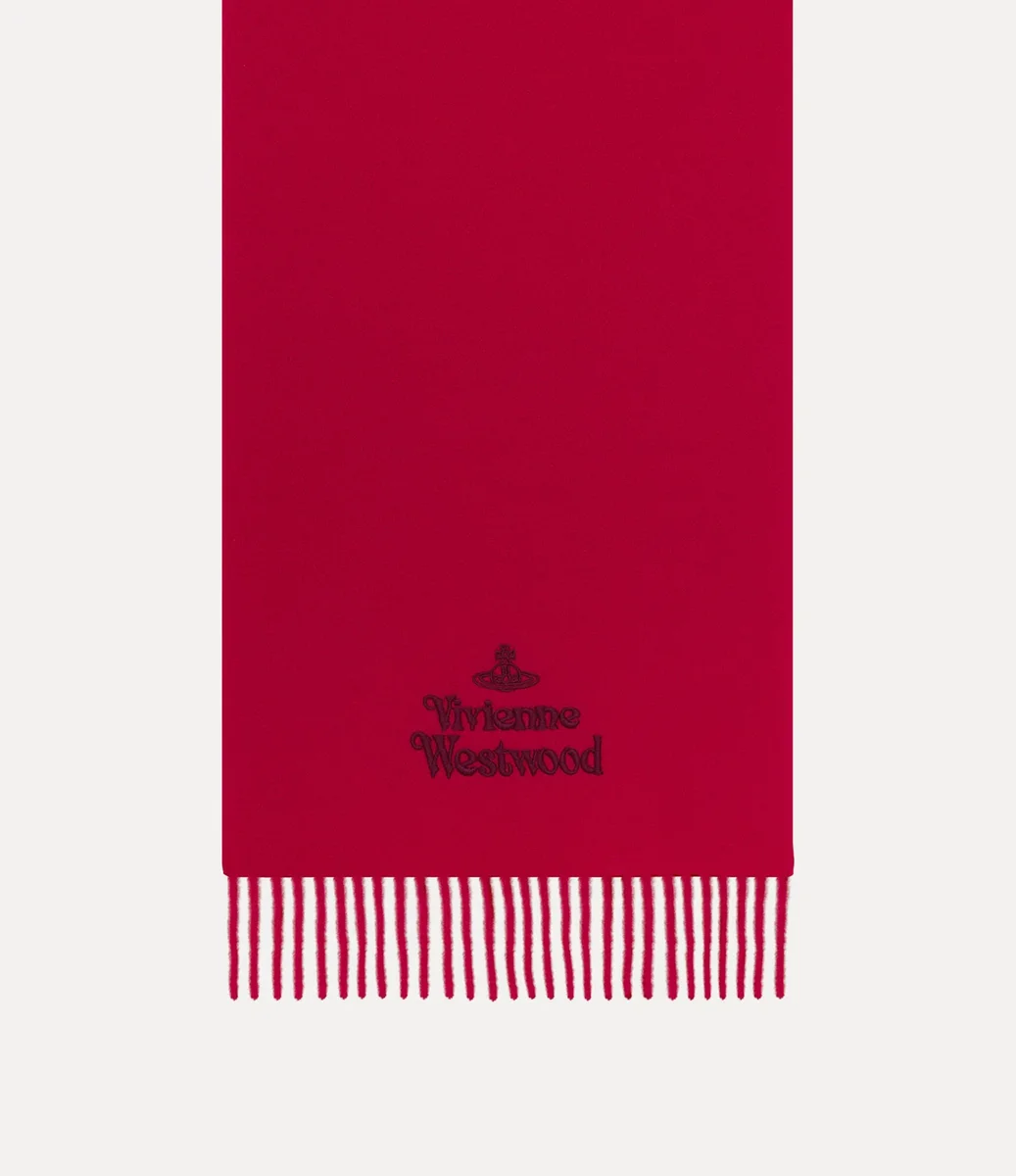 Vivienne Westwood Embroidered scarf features a soft woollen silhouette, branded with the house’s lettering motif at the bottom of the design.