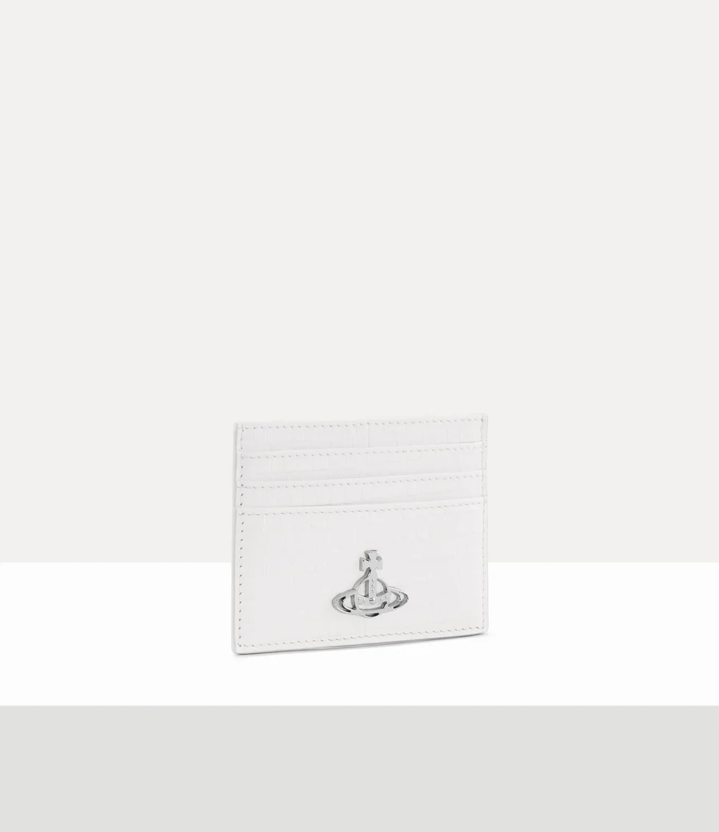 Our Flat card holderfeatures a croc-effect embossed finish, complete with card slots on either side of the design. The piece is embellished withthe house’s signature ‘Line orb’ motif onthe front panel, which represents tradition, encircled by the celestial rings of Saturn, symbolising the future.