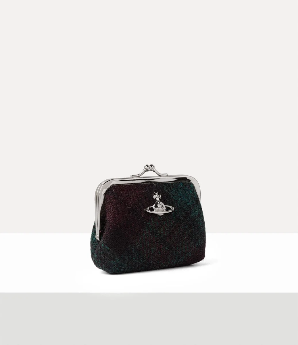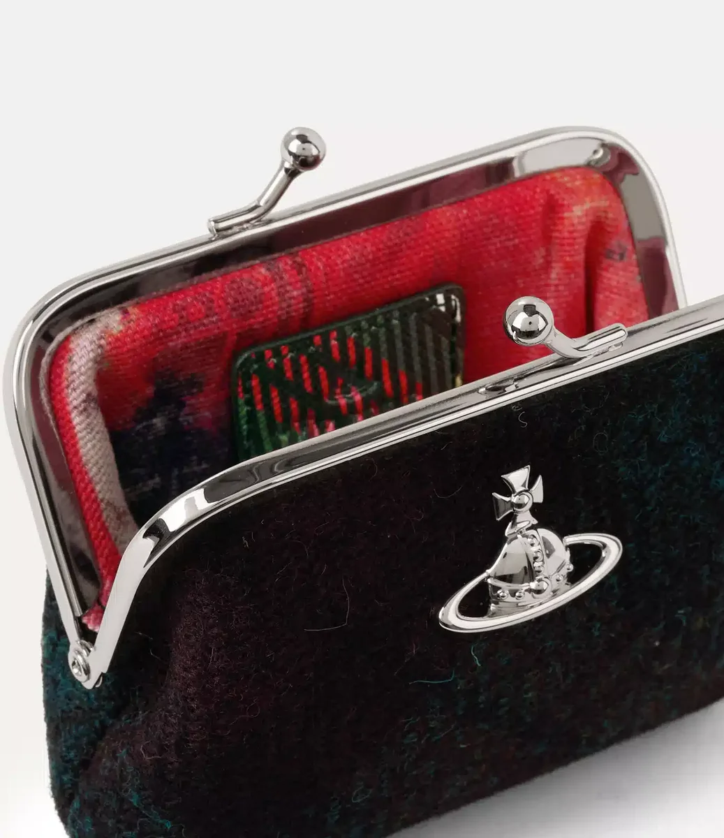 Vivienne Westwood Frame Coin Purse is adorned with this season’s dark Harris Tweed check motif, detailed with an exposed gold-tone frame.