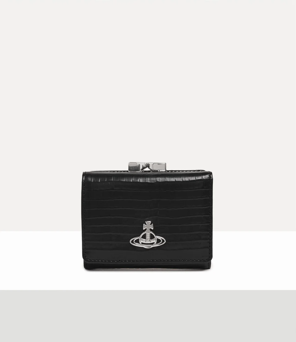 Our Small Frame wallet is crafted from leather and embossed with this season’s mini croc-effect finish. Designed with an organised interior and a dedicated coin compartment, the piece fastens securely with our signature silver-tone clasp.