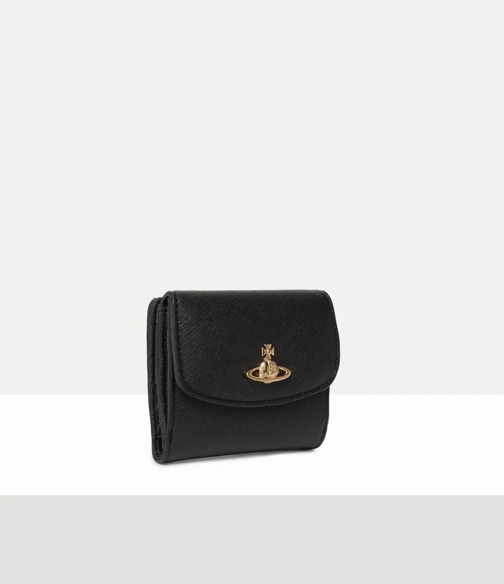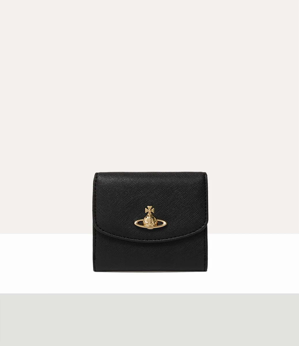 Vivienne Westwood Small wallet features a sleek bi-fold design, crafted from PU leather and distinguished by its crosshatch saffiano texture.