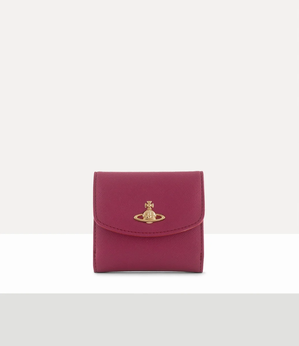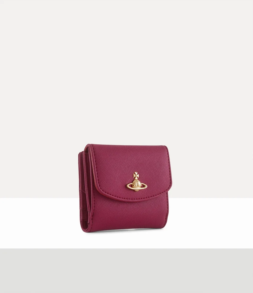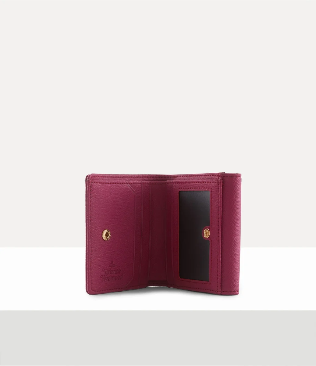 Vivienne Westwood Small wallet features a sleek bi-fold design, crafted from PU leather and distinguished by its crosshatch saffiano texture.