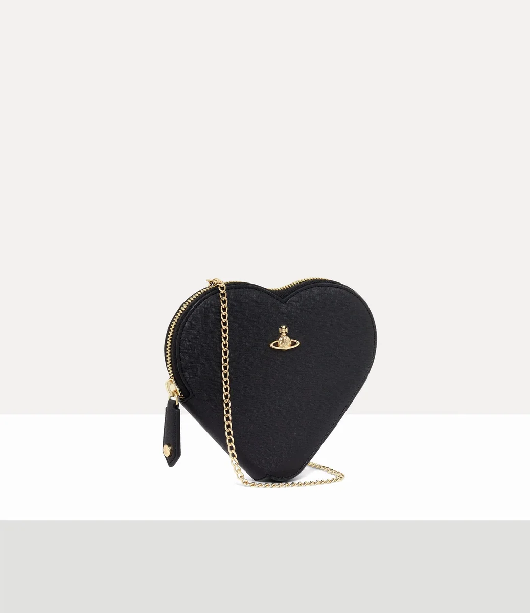 The New Heart Crossbody bagoffers a heart-shaped silhouette, recalling Vivienne’s affection for both humanity and the planet. The piece featuresa light gold-tonedorb motif on the front panel of the design, which symbolises tradition, encircled by the celestial rings of Saturn, representing the future.