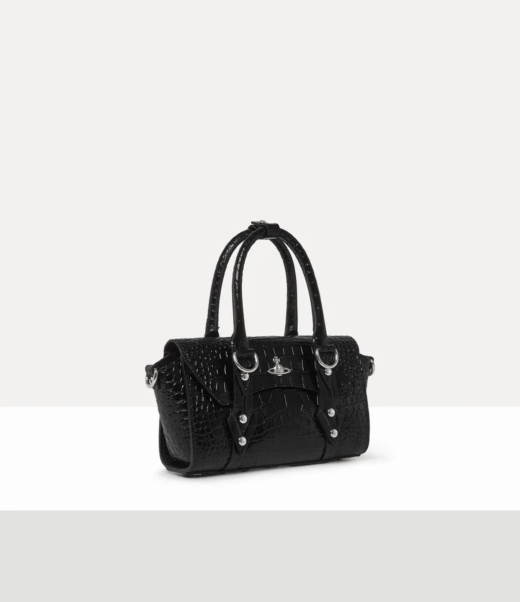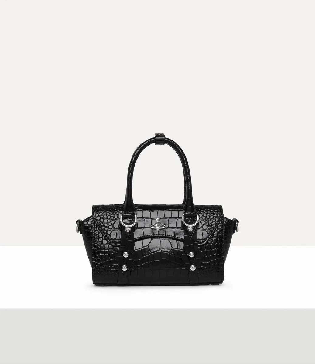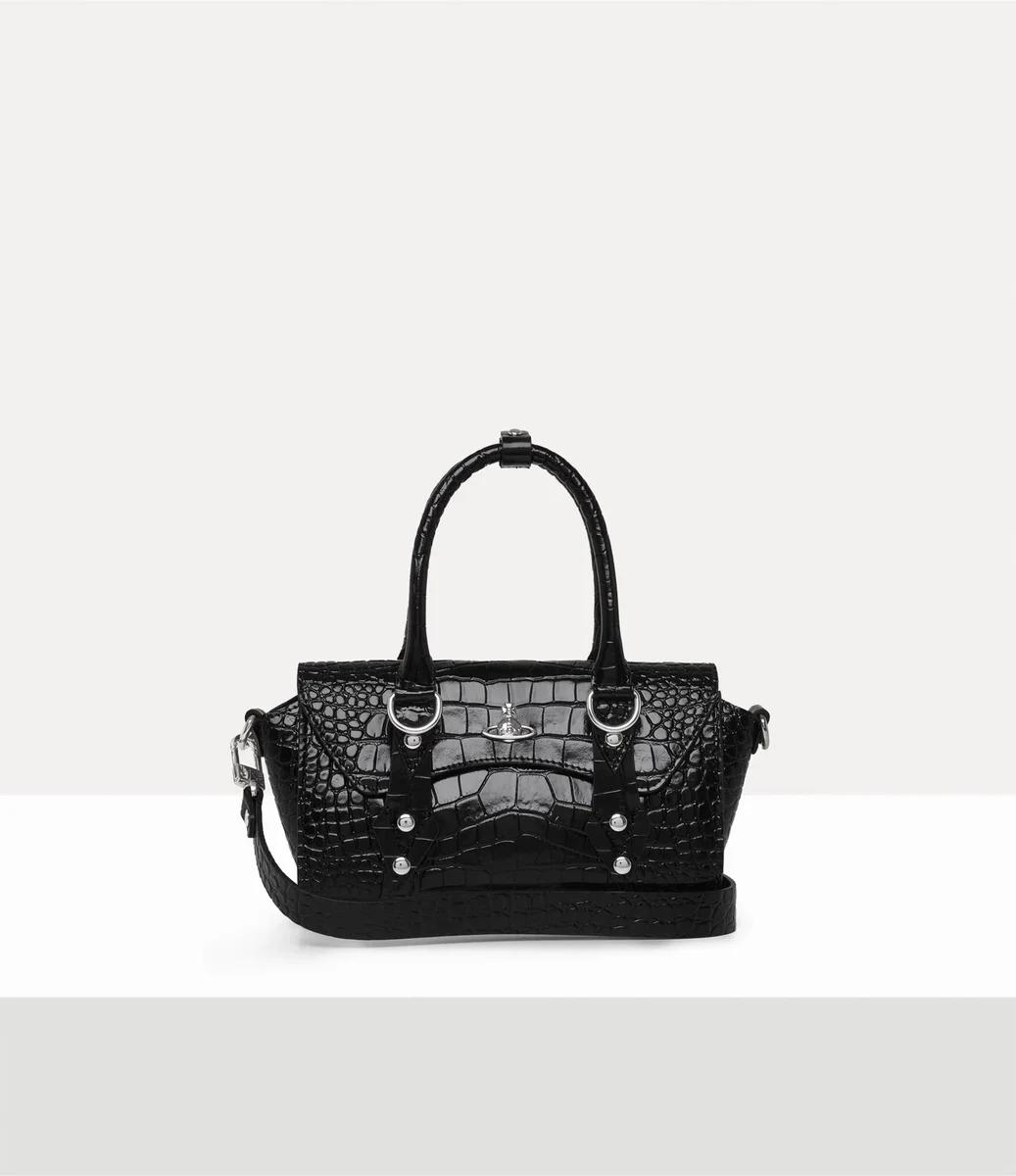 Vivienne Westwood Bettina Mini Crossbody bag features a croc-effect embossed leather profile.
