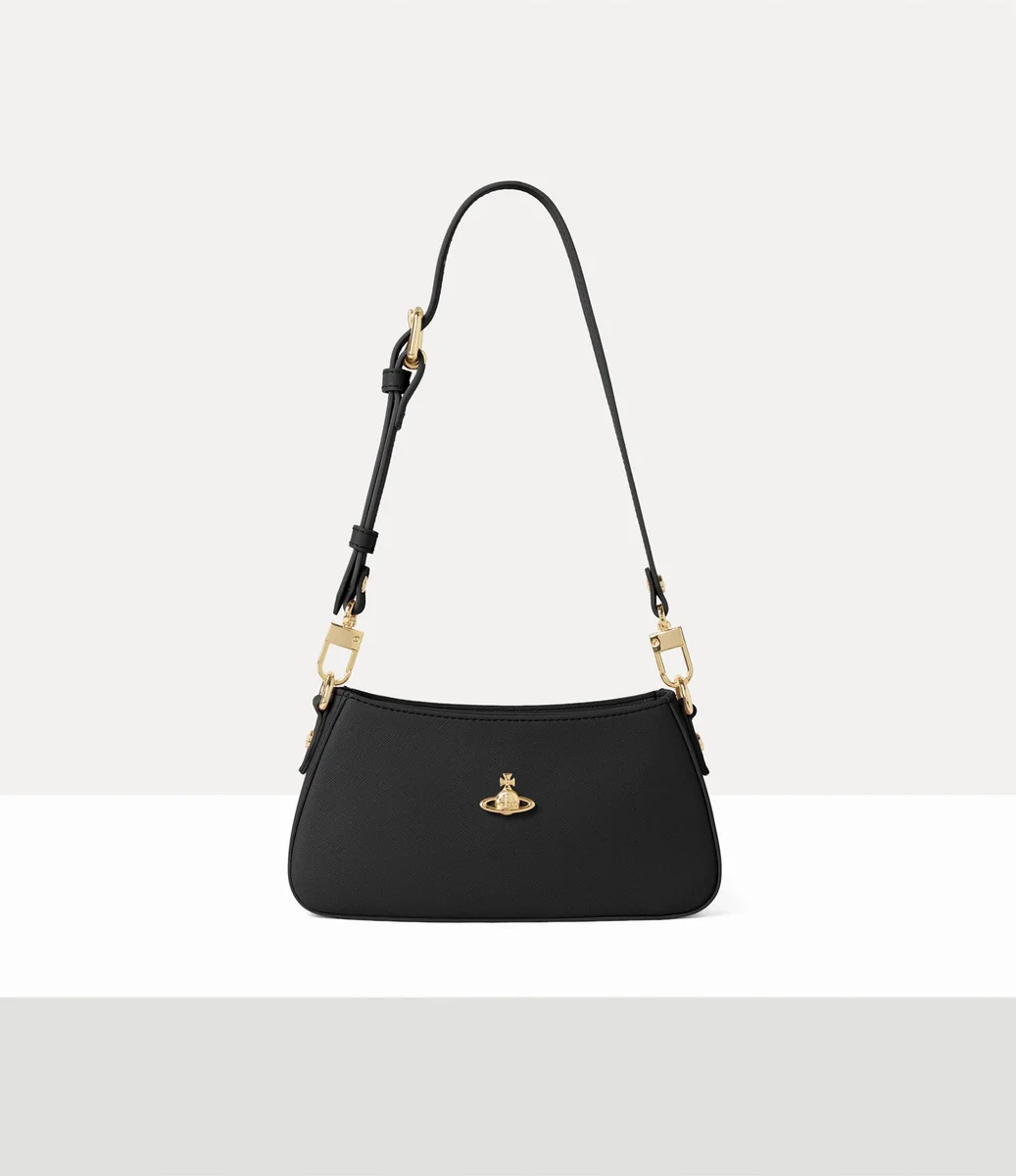 Our Tasha Shoulder Phone bag is crafted from PU leather with a saffiano-embossed texture and is adorned with the house’s signature metal hardware. At the front sits our bas relief orb motif, which represents tradition, encircled by the celestial rings of Saturn, symbolising the future.