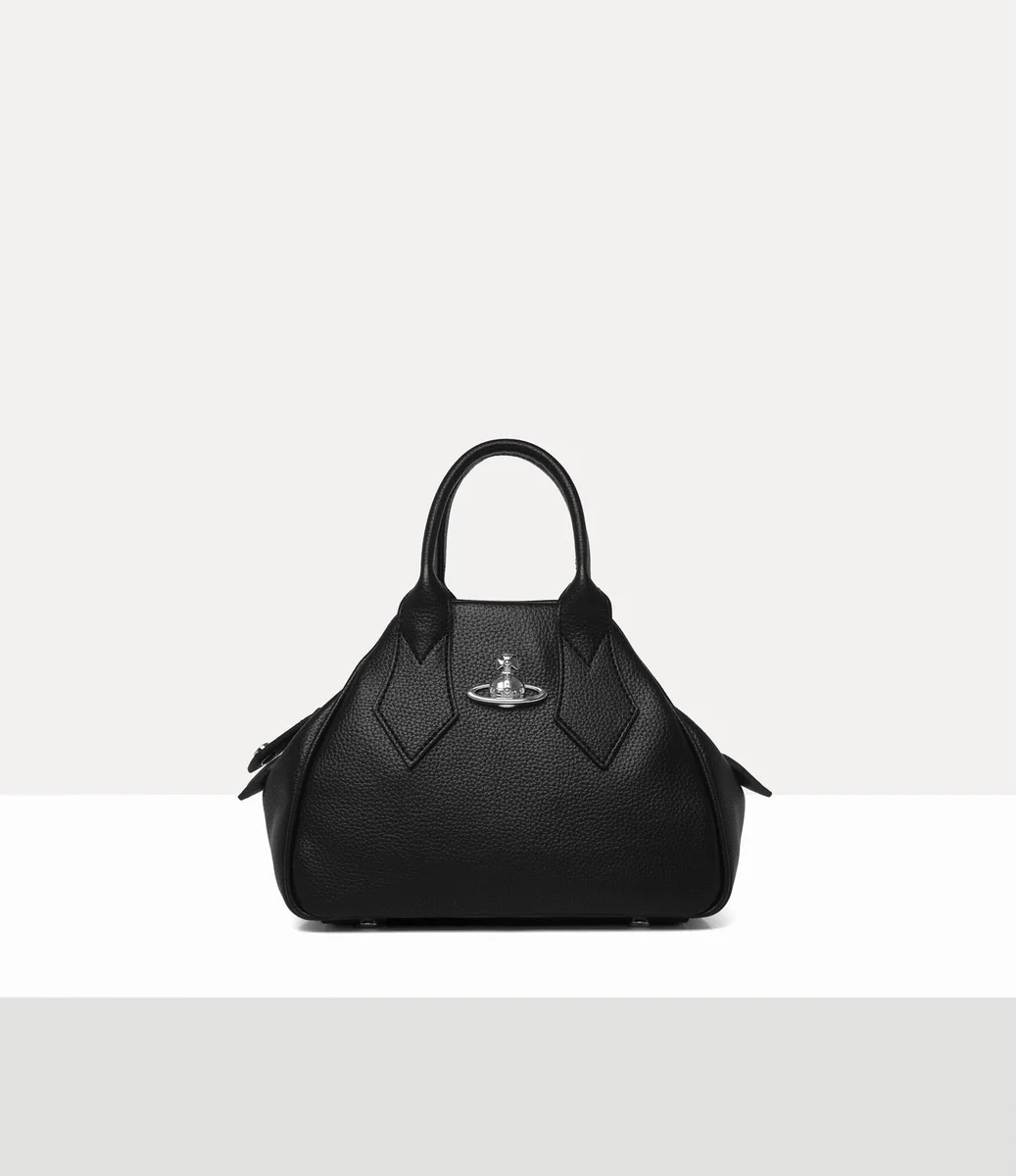 Vivienne Westwood Yasmine Small bag in PU leather features this season’s grain-embossed finish and metal hardware details.