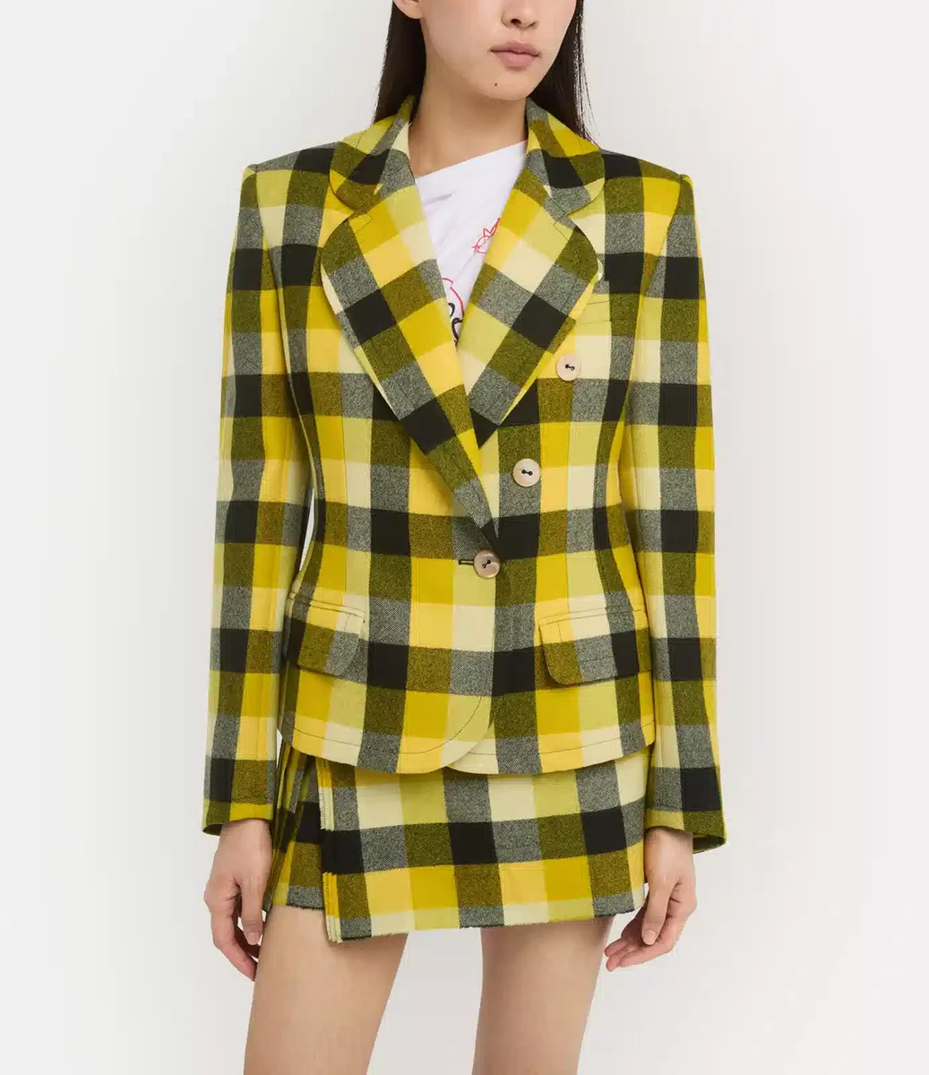 Crafted from wool, the Georgia jacket features this season’s ‘Pixel’ check motif in vibrant hues, finished with mother-of-pearl buttons. Cut to a single-breasted silhouette with softly curved lapels, the design cinches at the waist with tailored darting.