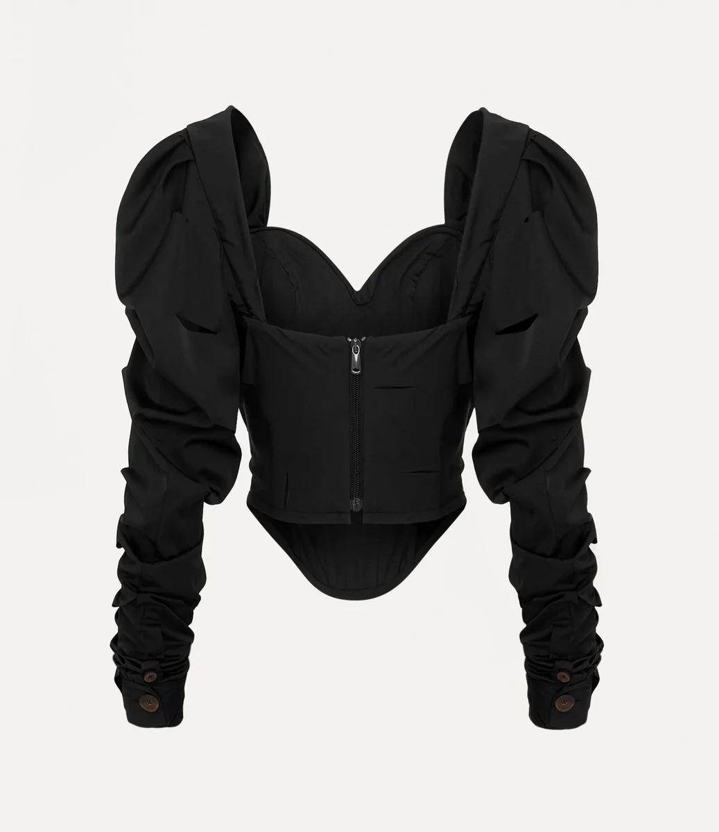 Vivienne Westwood LS Sunday Corset Top is crafted from richly dyed taffeta and features a delicate laser-cut design.
