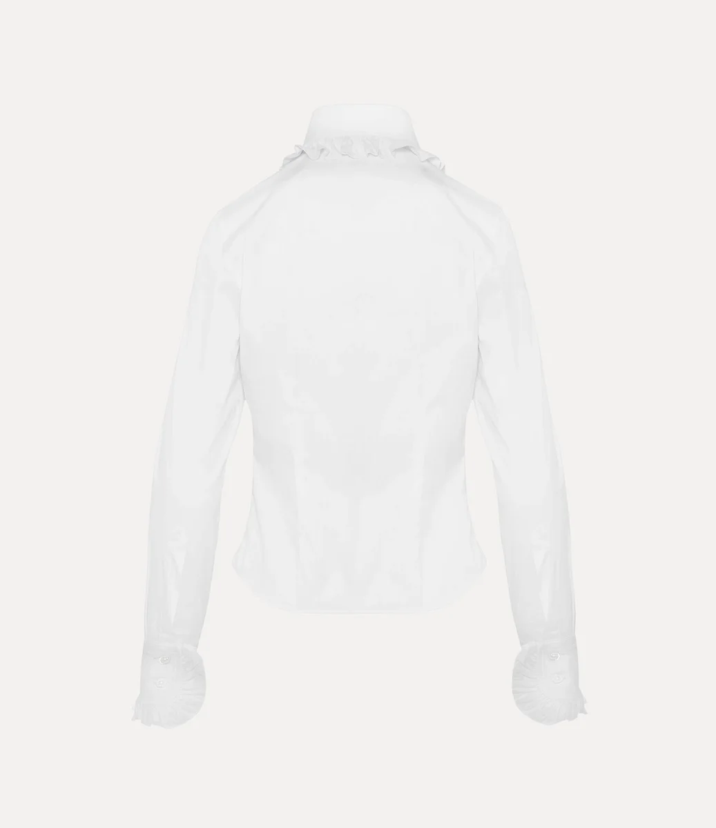 The Toulouse Frill shirt revives our archival cut-out heart tailoring at the neckline – synonymous with Vivienne’s affection for both humanity and the planet. The piece is finished with our signature orb embroidery at the chest, complete with a delicately rounded collar, framed with gathered frill detailing.