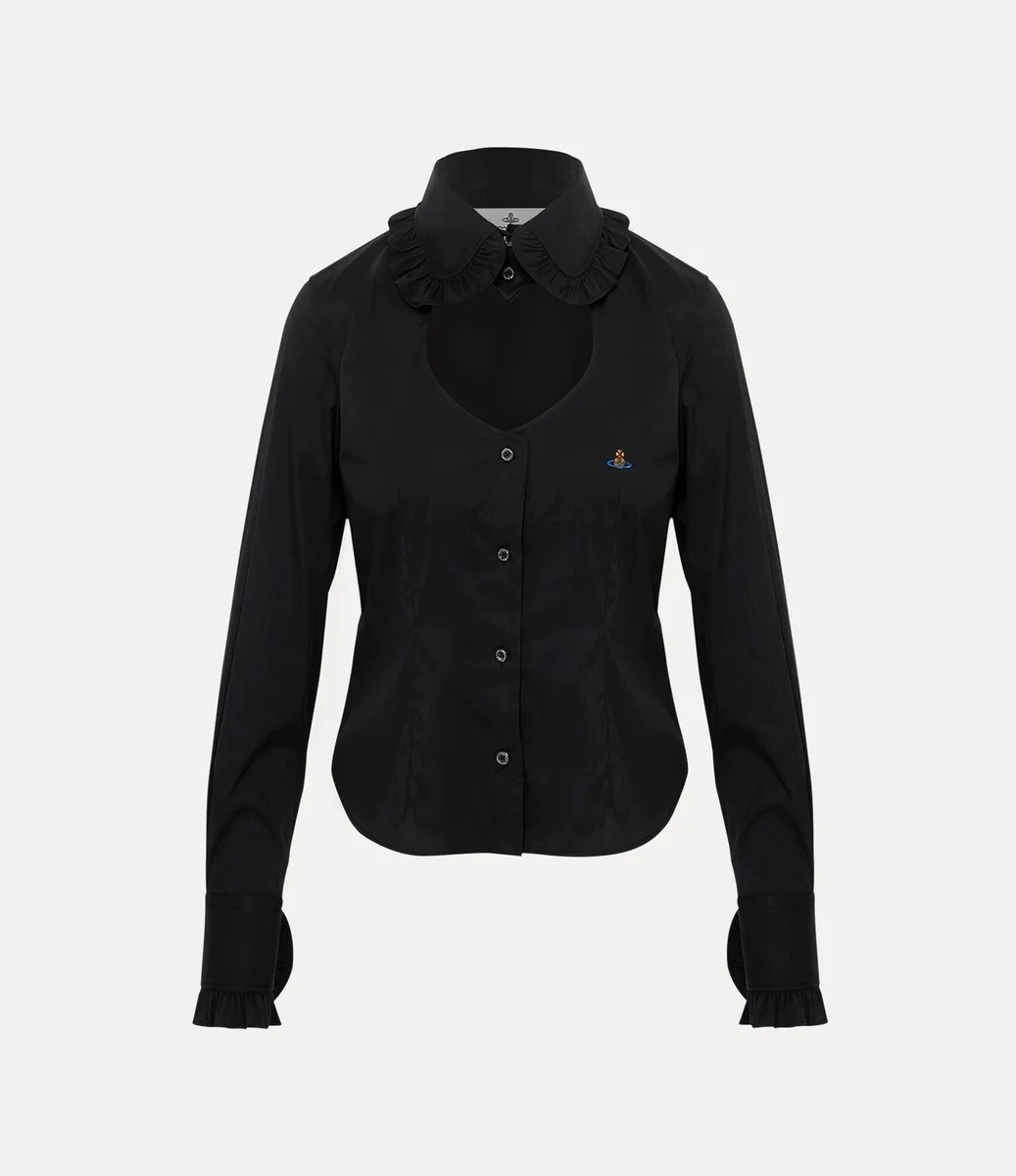The Toulouse Frill shirt revives our archival cut-out heart tailoring at the neckline – synonymous with Vivienne’s affection for both humanity and the planet. The piece is finished with our signature orb embroidery at the chest, complete with a delicately rounded collar, framed with gathered frill detailing.