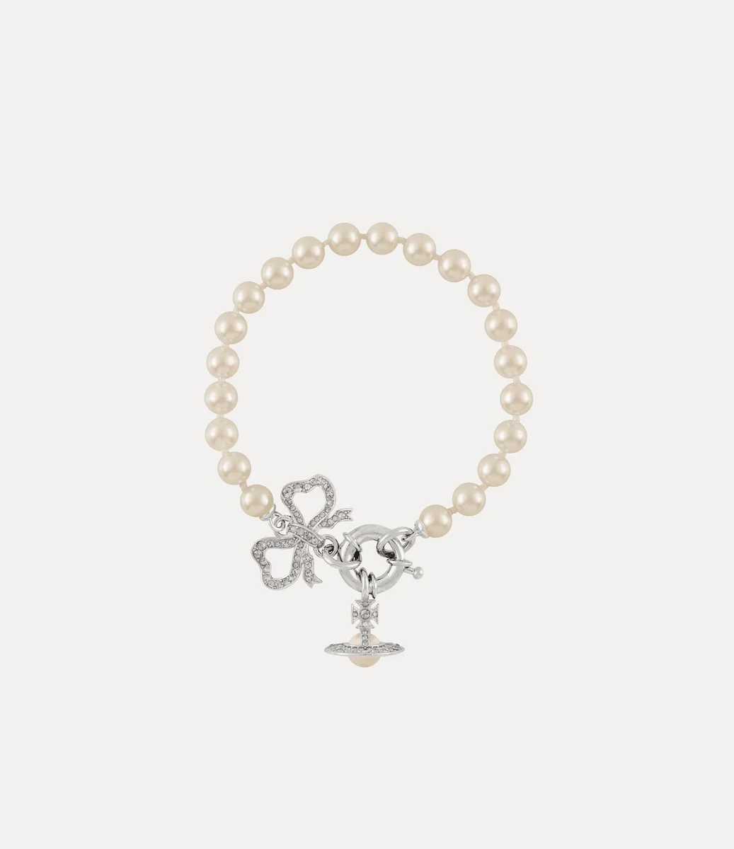 The silver-tone Rigoberta Pearl bracelet features butterfly bow charm, complete with opulent pearls and crystal-embellished details.
