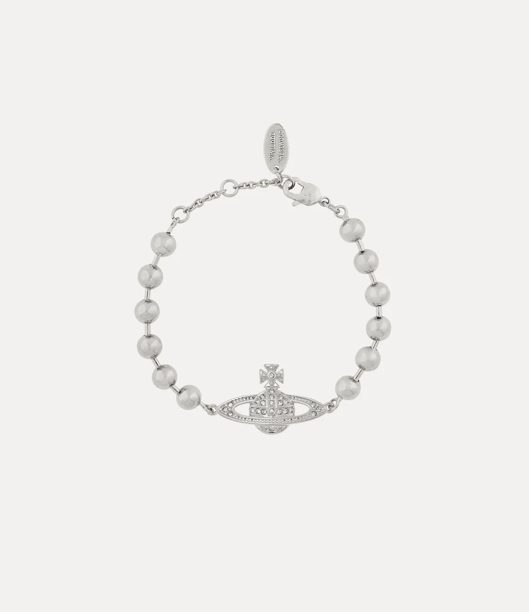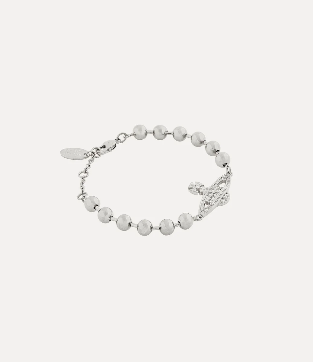 The Thames Mini Bas Relief bracelet featuresan elegant ball chain with a distinct two-dimensional ‘Bas Relief’ orb in the centre, inspired by our house’s orb-shaped motif. Encrusted with glistening tonal crystals, the piece recalls Vivienne’s vision of taking tradition into the future.