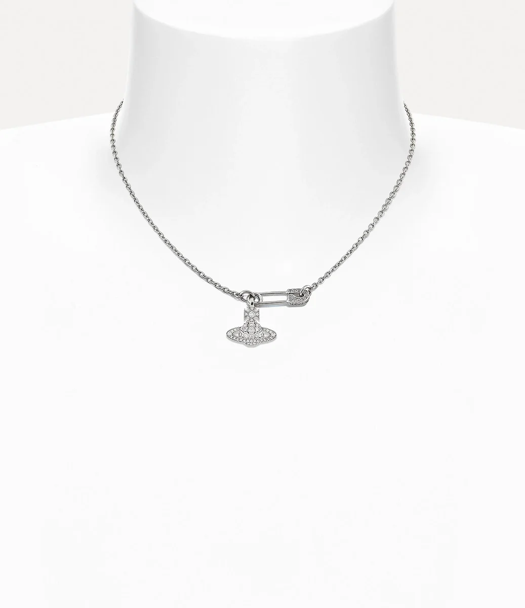 Our Lucrece Pendant necklace features crystal-embellished details in polished silver tones, accented by our signature safety pin motif alongside the iconic orb design. The safety pin, a timeless symbol of non-conformity, reflects Vivienne’s distinctive punk-inspired vision.