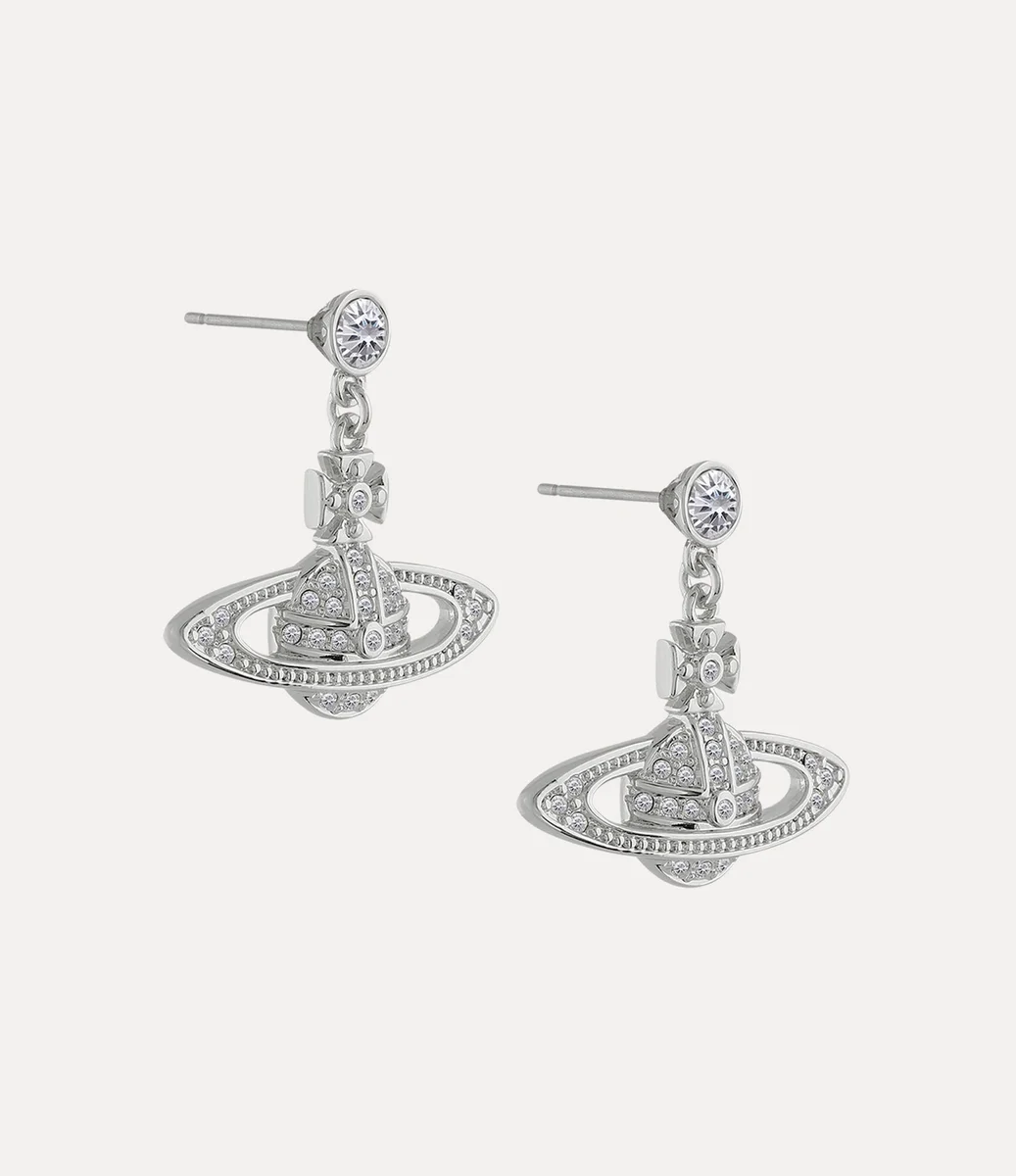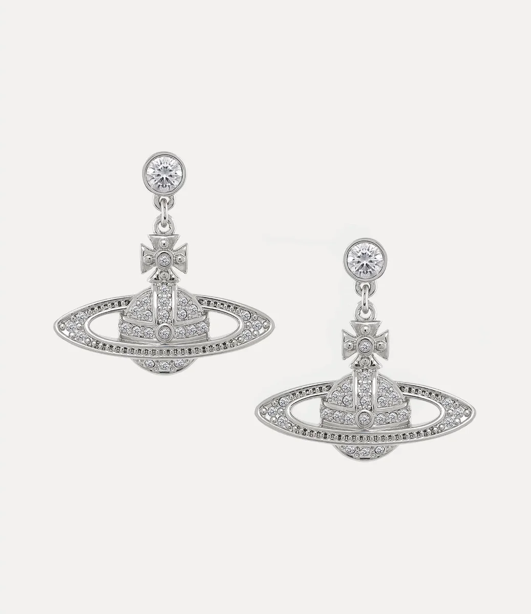 The orb silhouette has long been synonymous with the house, recalling Vivienne’s vision of launching tradition into the future. The Mini Bas Relief Drop earrings receive an orb shape, complete with polished platinum-tone plating and white crystal details to finish.