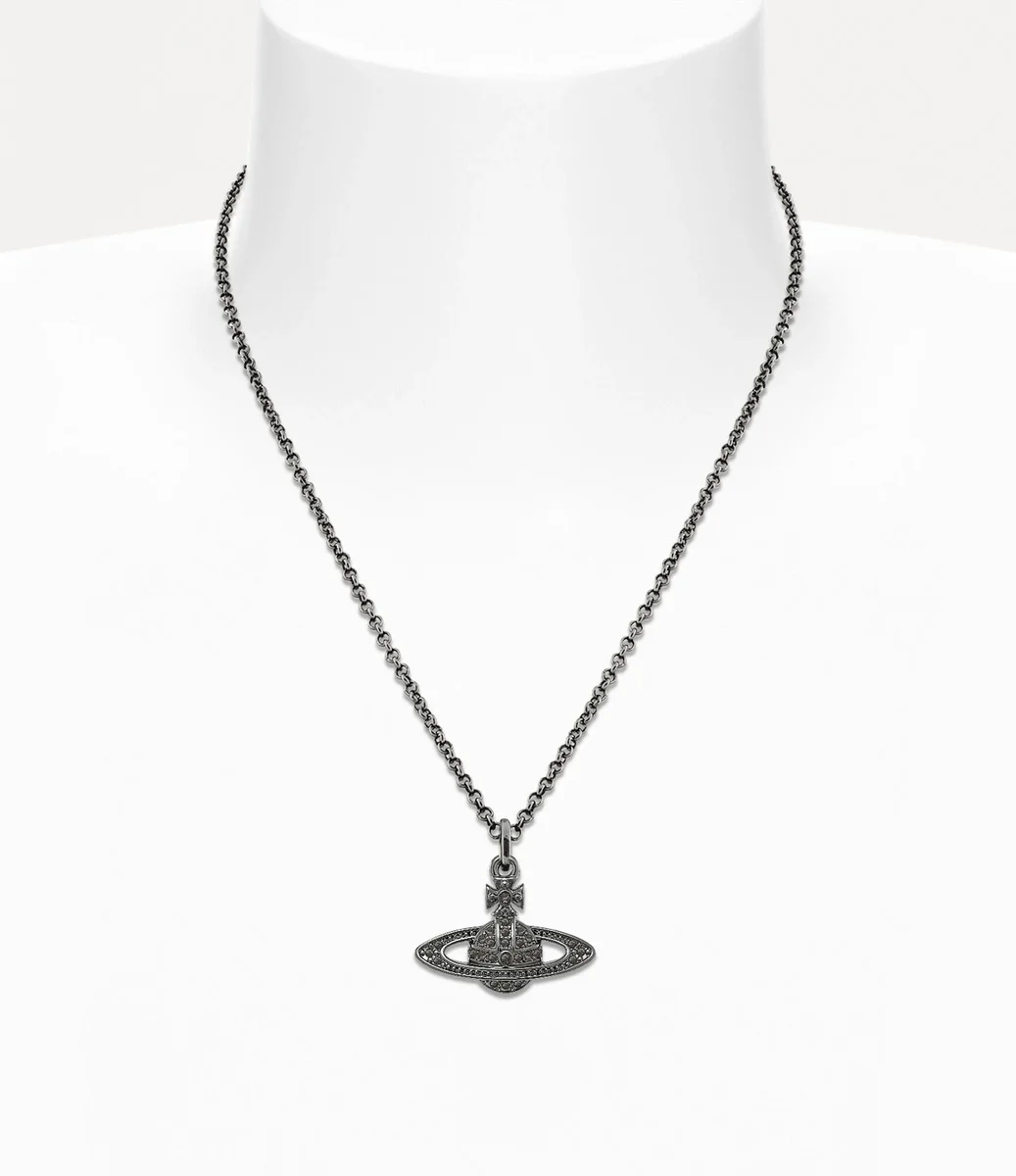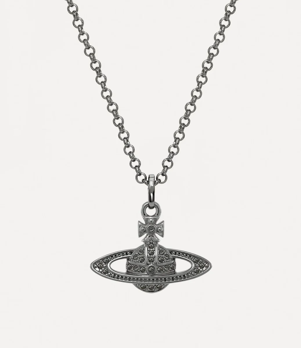 Vivienne Westwood Mini Bas Relief Pendant necklace features a crystal-encrusted orb at the centre of the design, complete with a classic lobster clasp closure.