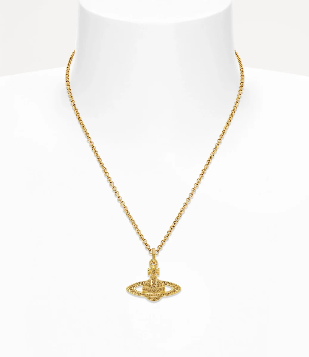 Vivienne Westwood Mini Bas Relief Pendant necklace features a gold-tone metal profile, complete with glistening tonal crystal details.