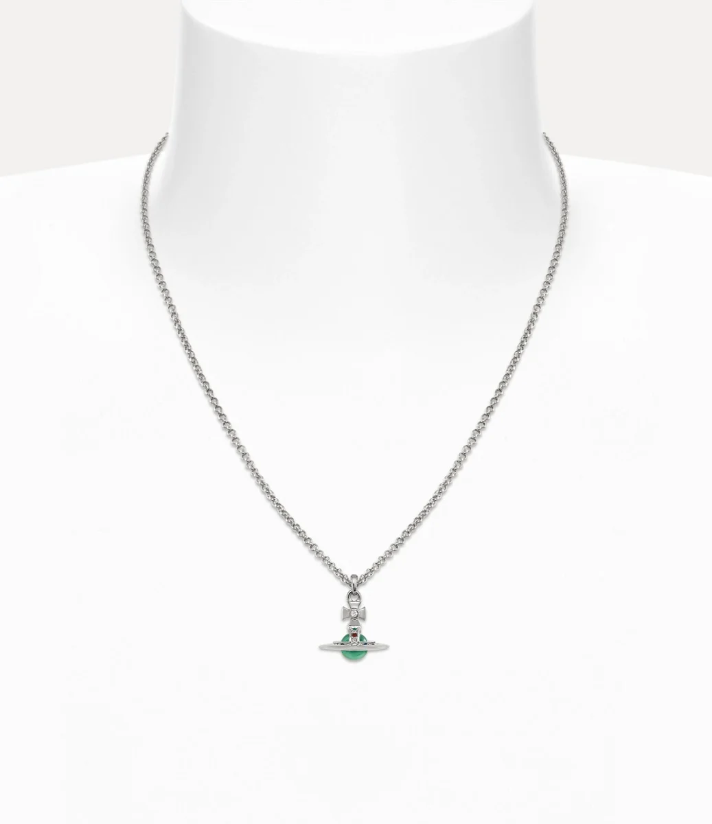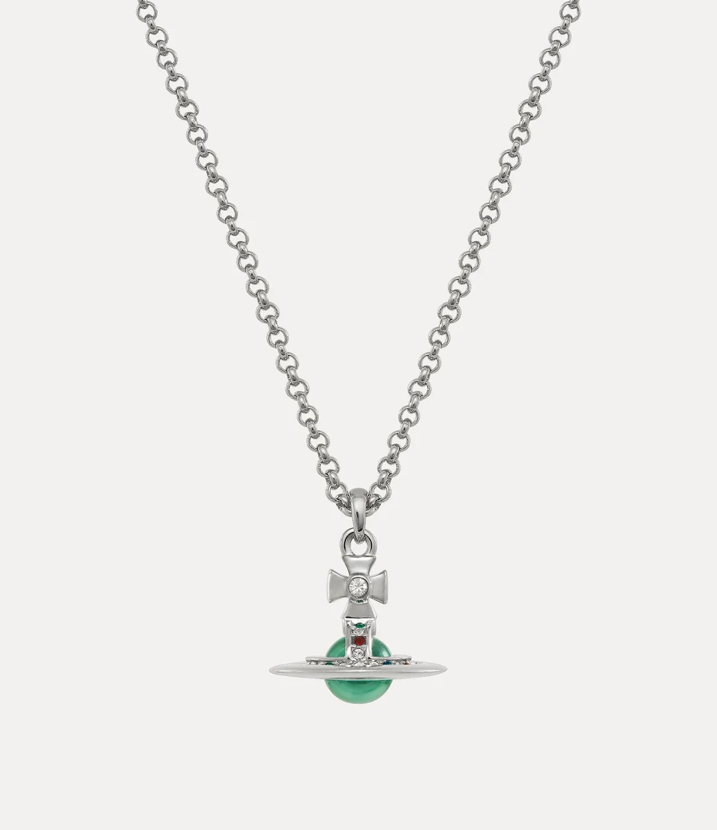 Our New Petite Orb Pendant necklace has become a signature style of the house. This season, the piece receives an update with silver-tone plating and a colourful three-dimensional orb encased with a crystal-encrusted Saturn ring – synonymous with the ethos of launching the past into the future.