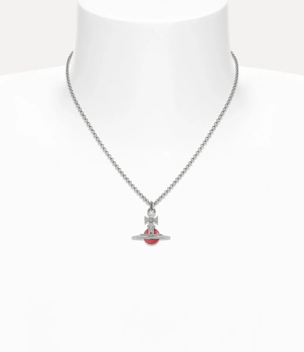 Our New Tiny Orb Pendant necklace is a signature style of the house, featuring a pink spherical glass gemstone that is complemented by a secure lobster clasp. The three-dimensional orb pendant is adorned with glistening crystal details in vibrant hues, recalling the ethos of launching the past into the future.