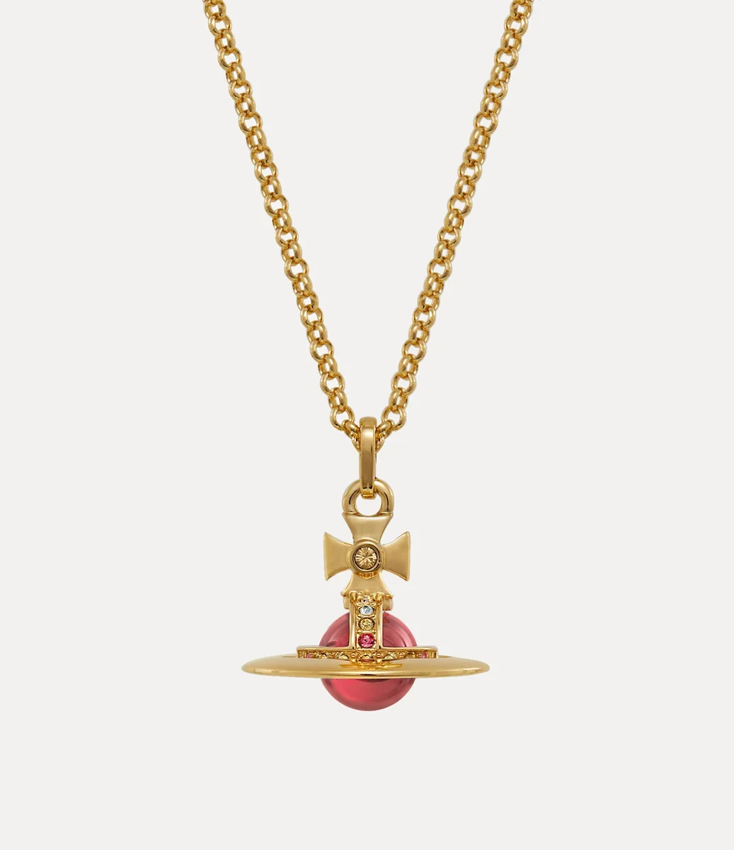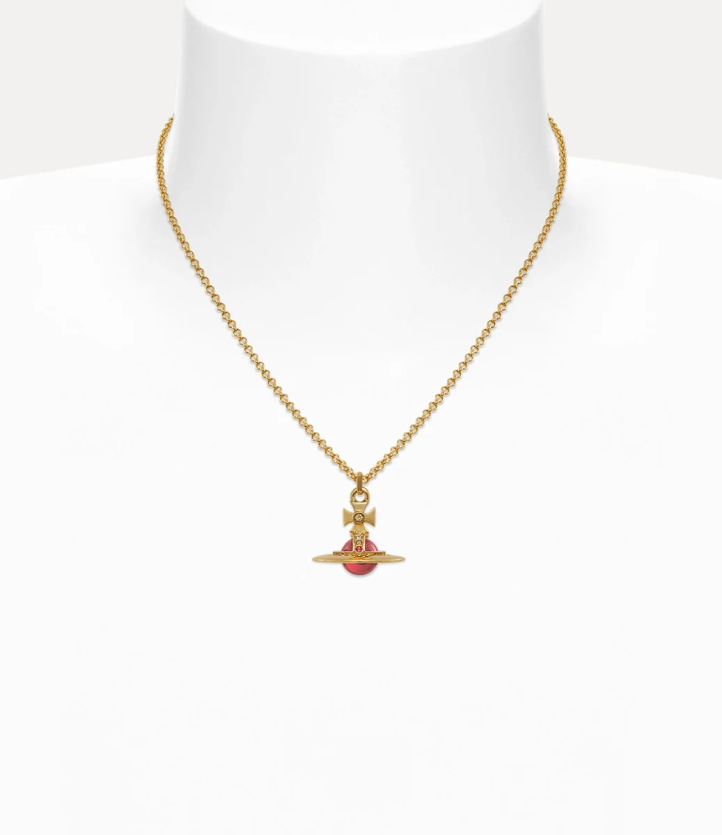 Our New Tiny Orb Pendant necklace is a signature style of the house, featuring a pink spherical glass gemstone that is complemented by a secure lobster clasp. The three-dimensional orb pendant is adorned with glistening crystal details in vibrant hues, recalling the ethos of launching the past into the future.
