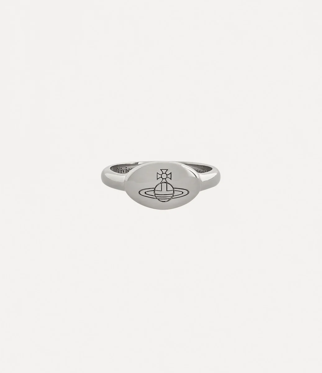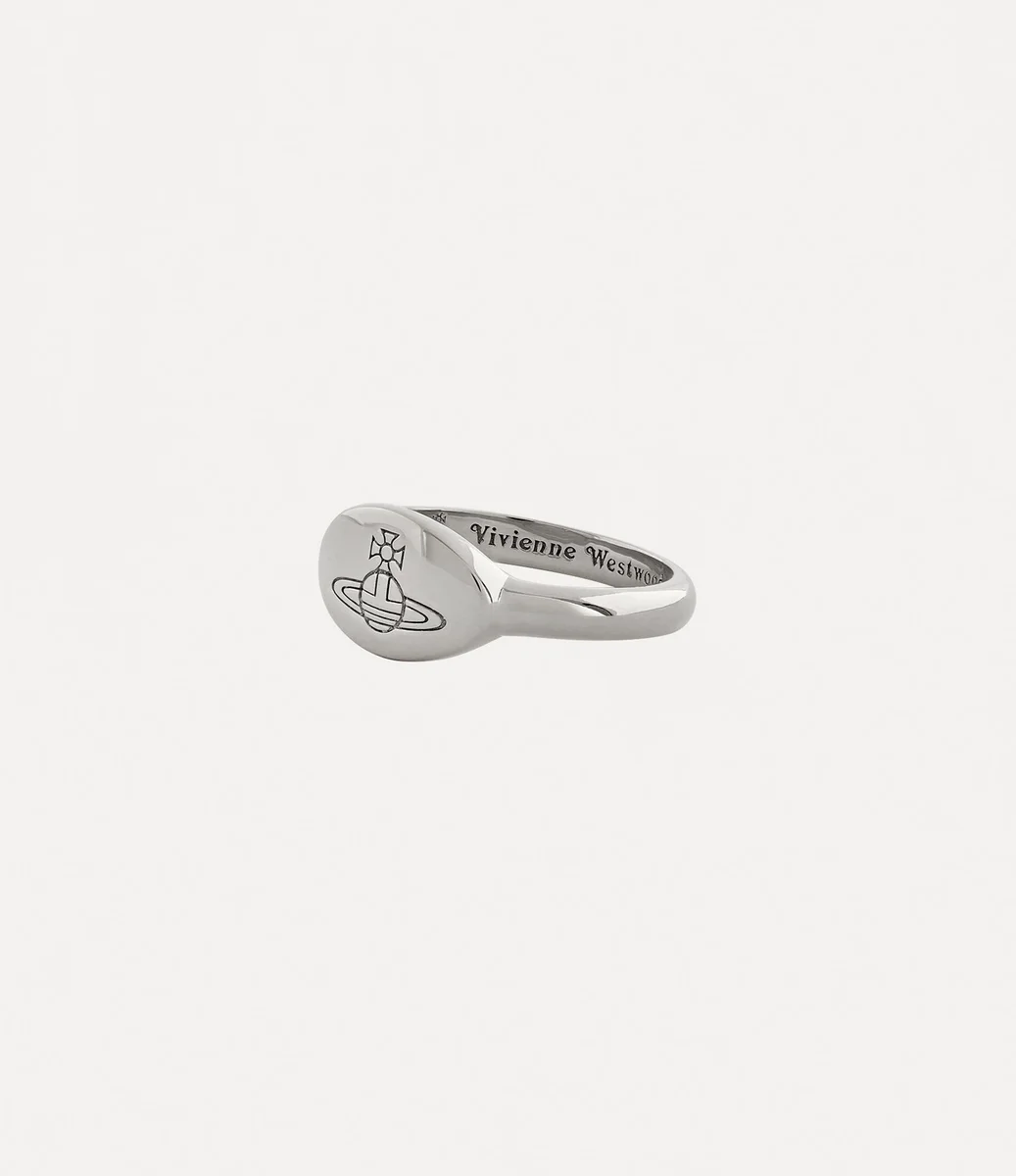 Vivienne Westwood Tilly ring features a classic signet silhouette, crafted from recycled silver and finished with polished platinum-tone plating.