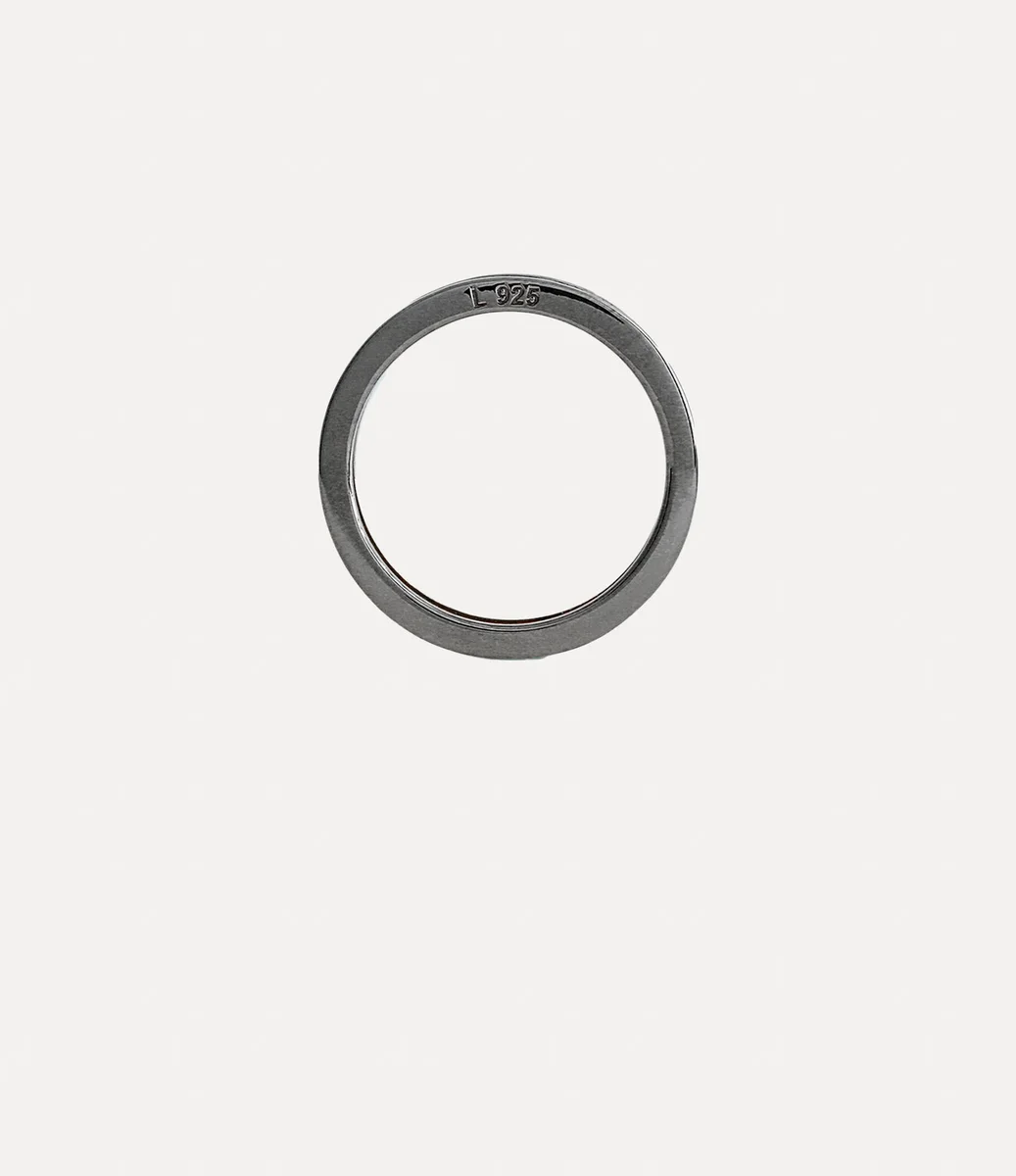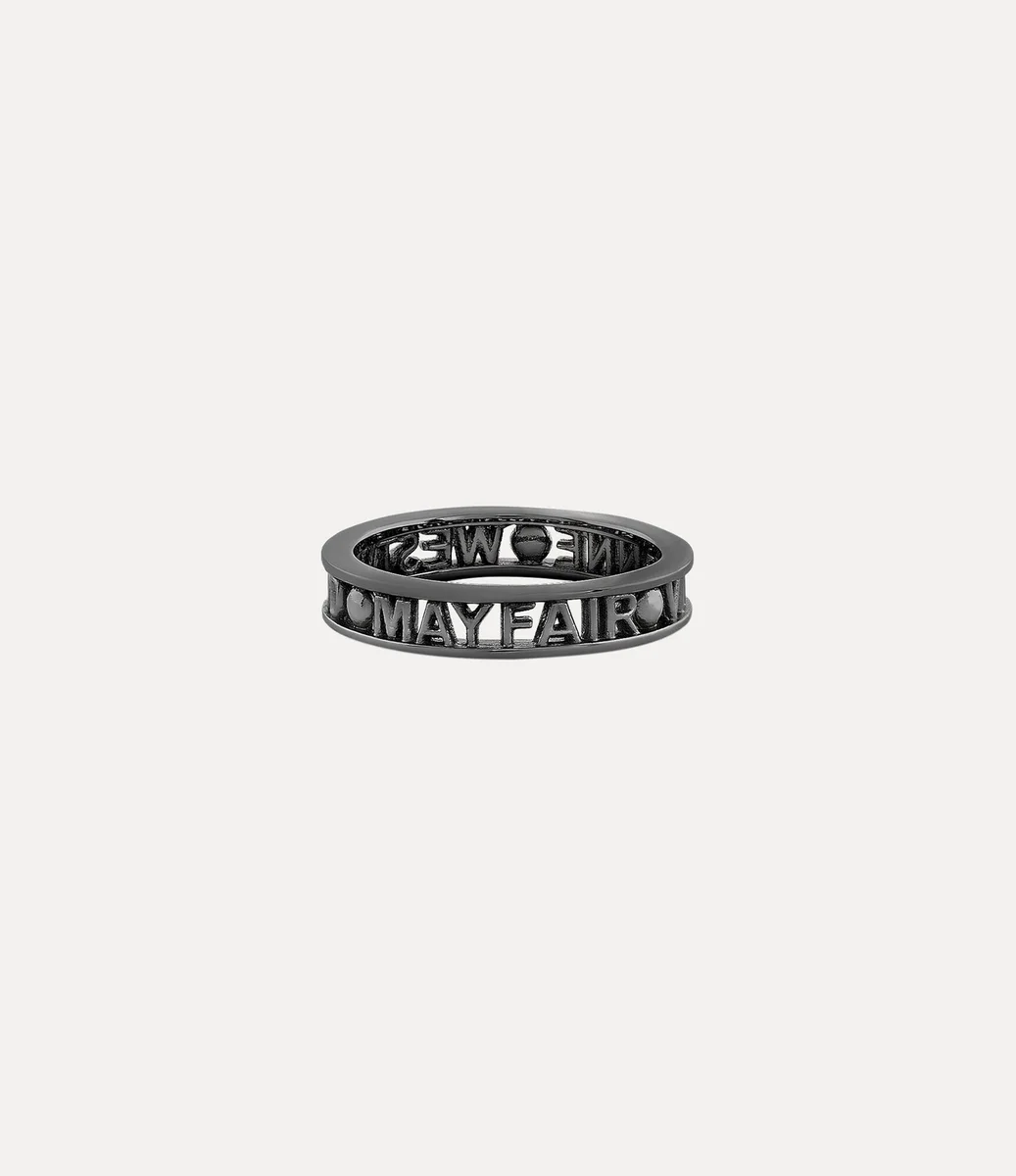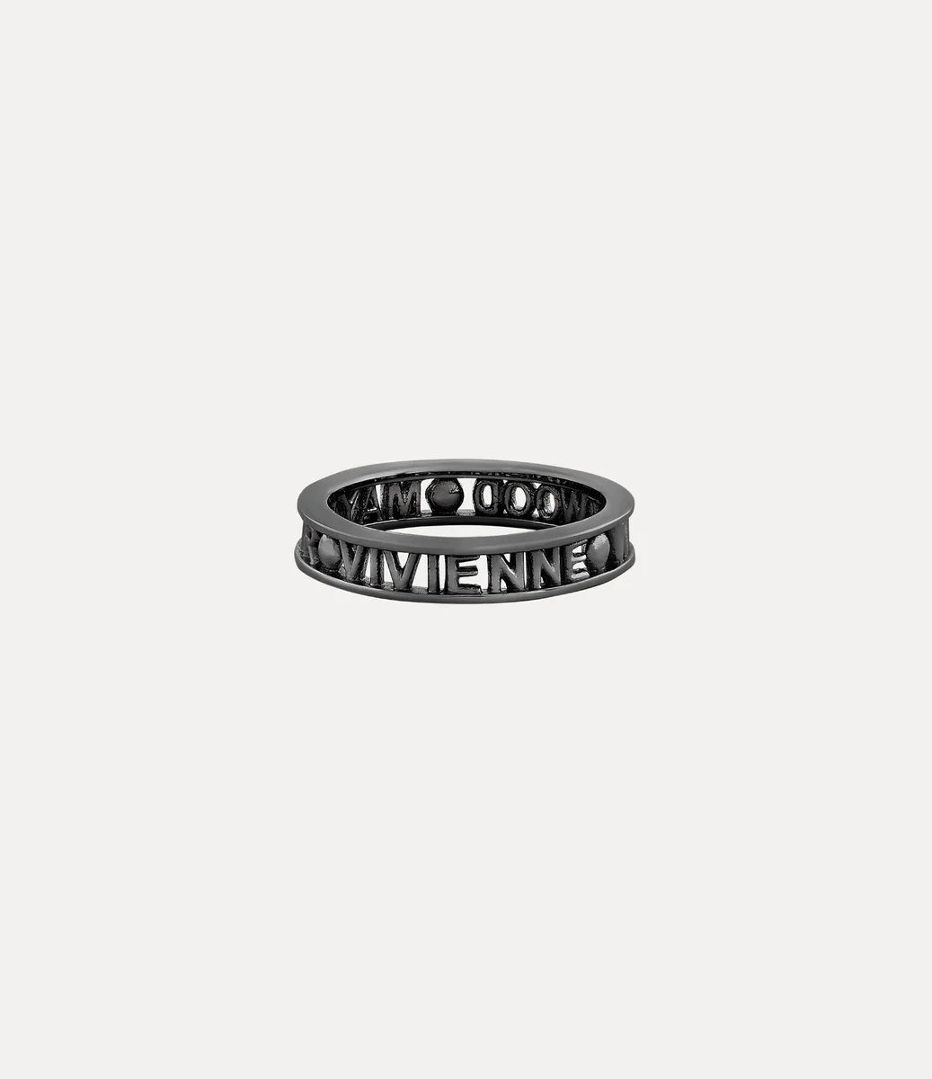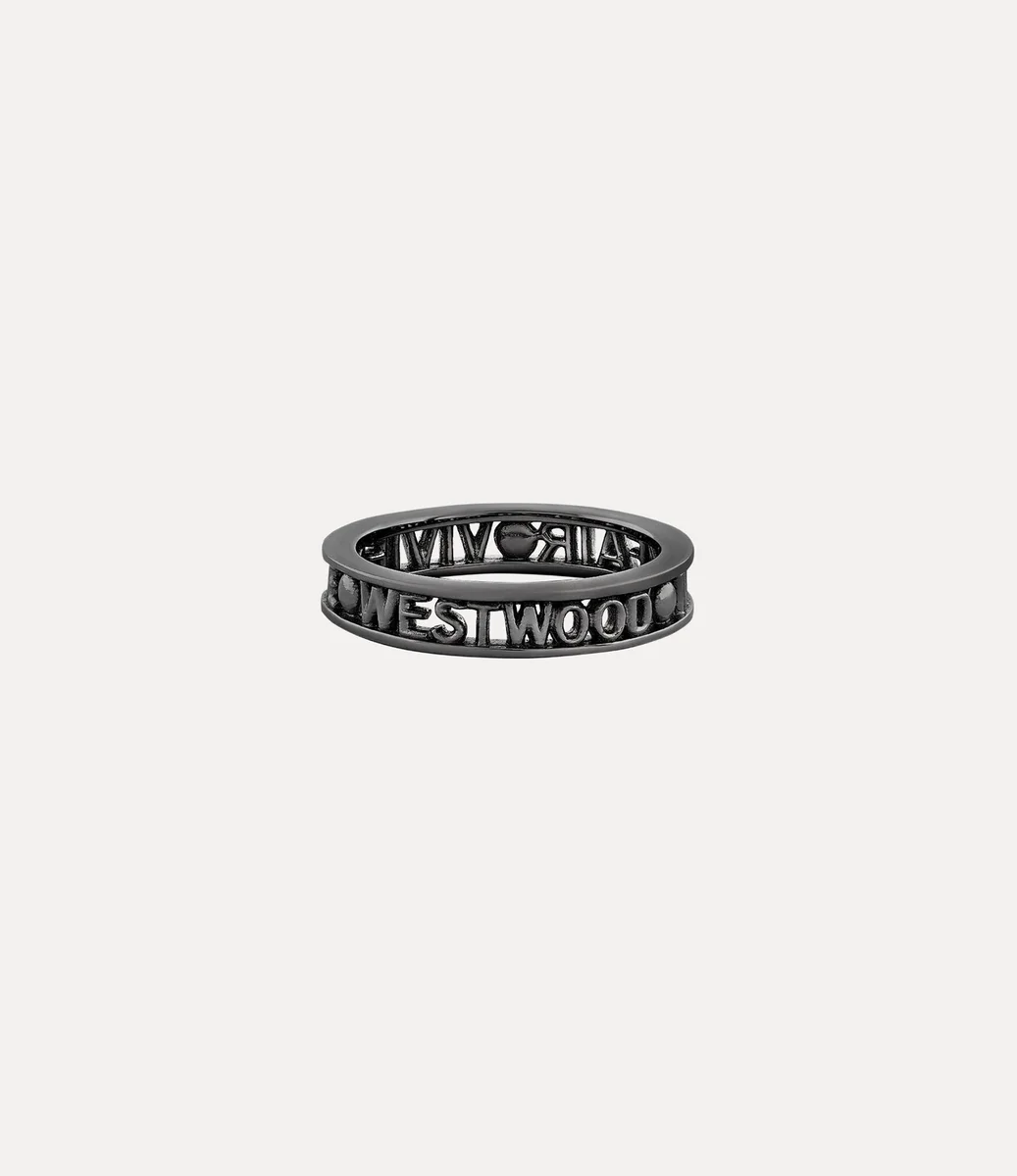 The Westminster ring is named after the esteemed Westminster district in London, renowned for its rich history and cultural importance. The piece receives a silhouette crafted from recycled silver, adorned with a gunmetal-tone finish that elegantly encircles the slim lettering logo on the band.