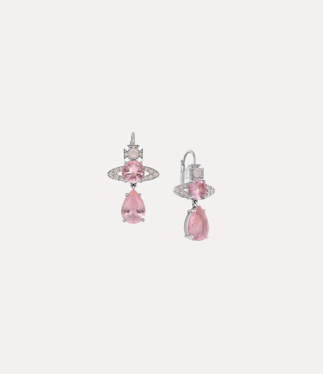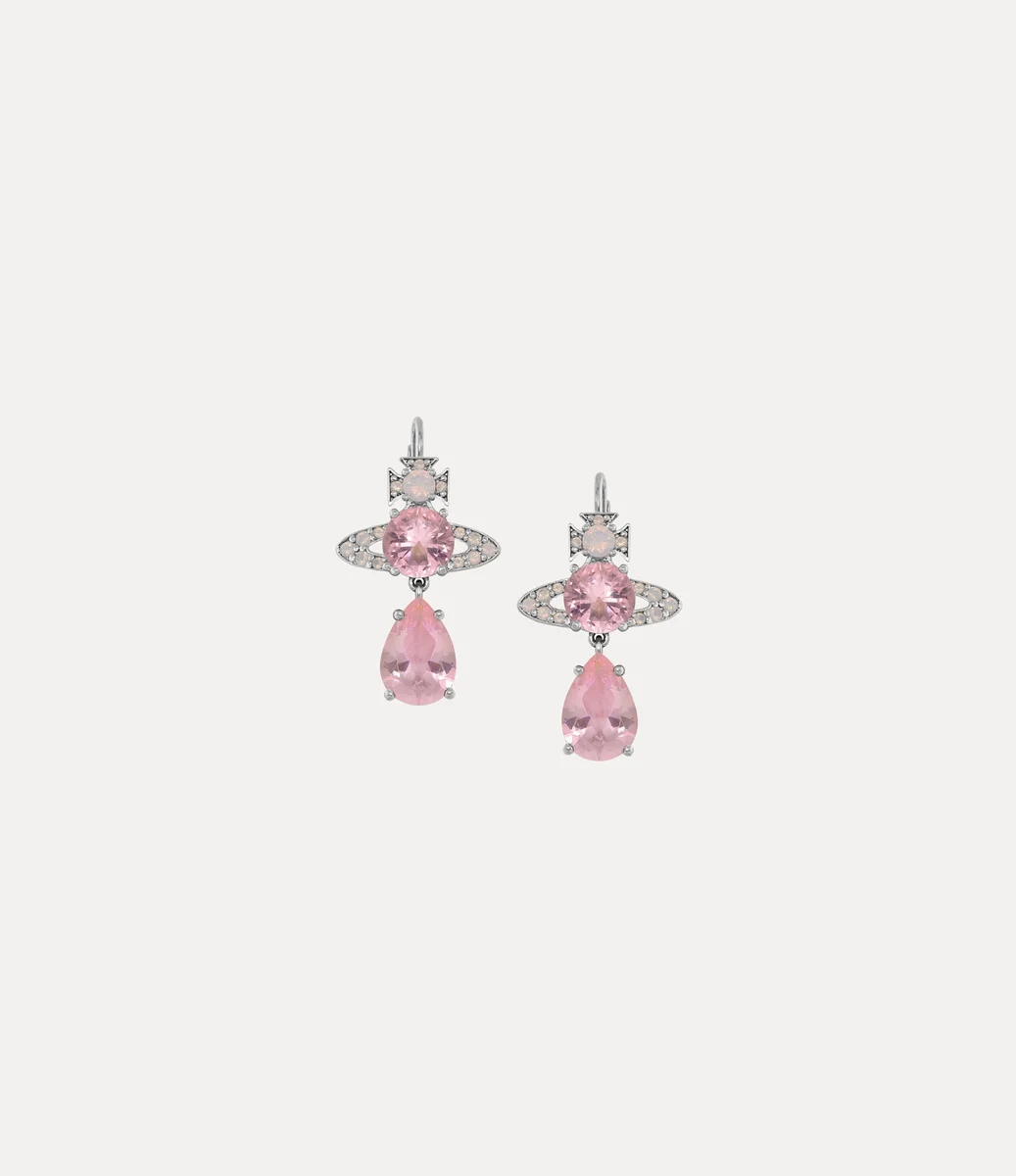 Vivienne Westwood Ismene Drop earrings are crafted from polished silver-tone metal, complete with a large, faceted pink gemstone at the centre.