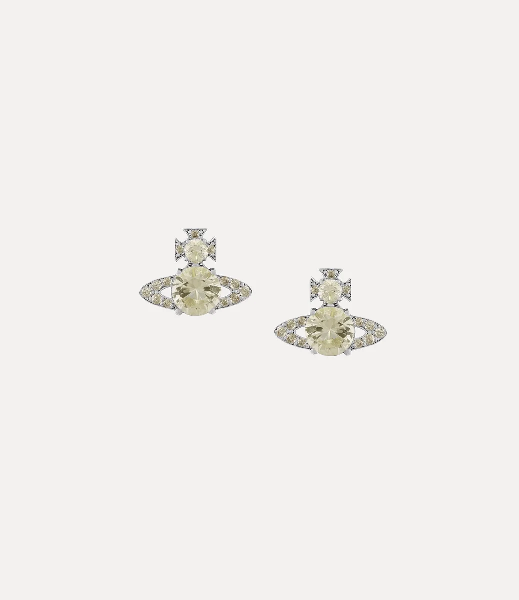 Our Ismene earrings return this season, featuring a polished silver-tone finish and yellow crystal accents. The orb silhouette draws inspiration from the house’s signature orb motif – synonymous with Vivienne’s vision of launching tradition into the future.