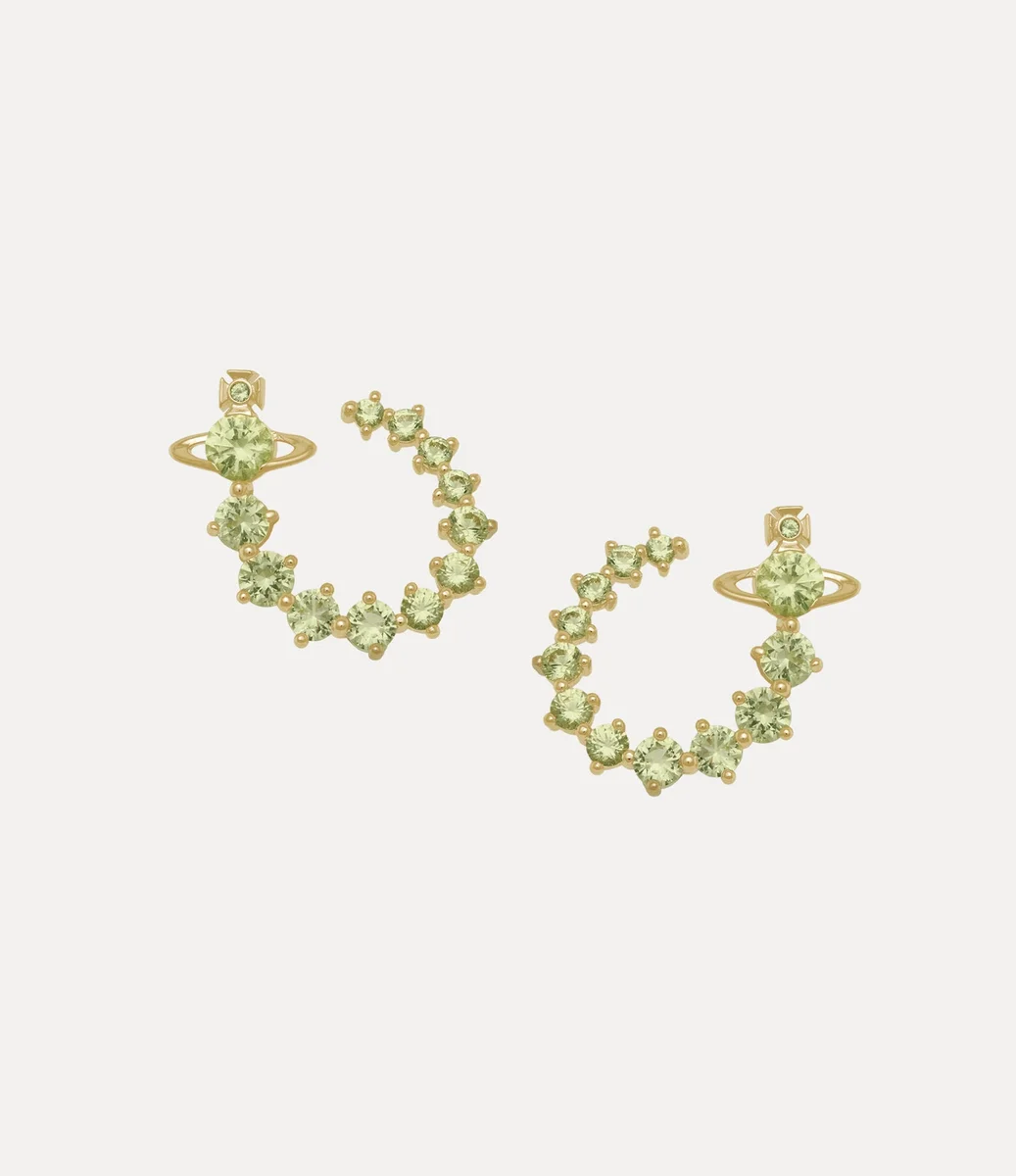 Crafted in polished gold-tone plating, our Lydia earrings curve gently around the earlobe to create the illusion of a sculptural hoop. Embellished with cubic zirconia stones that taper elegantly in size, the design is adorned with our timeless orb emblem – recalling Vivienne’s vision of taking tradition into the future.
