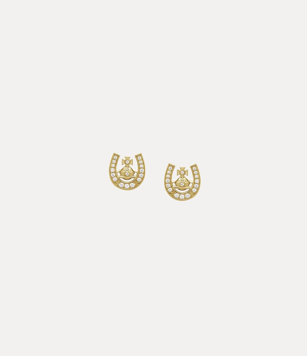 Our Mare earrings reimagine the house’s signature iconography, featuring a gold-tone orb encircled by a central horseshoe motif, a symbol of good fortune and protection. Embellished with tonal crystals for a subtle glisten, the piece is finished with our classic orb-shaped butterfly-back closure.