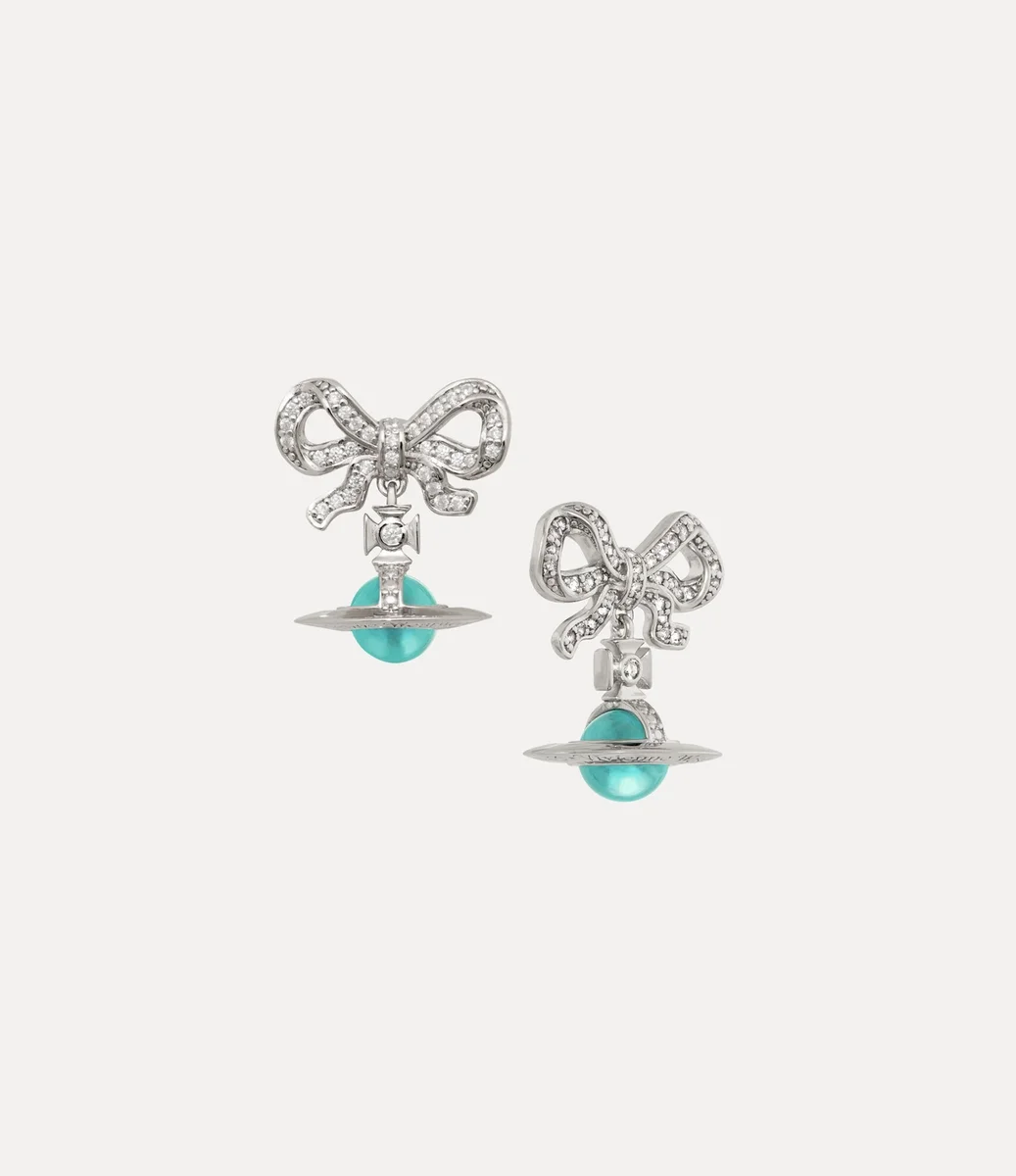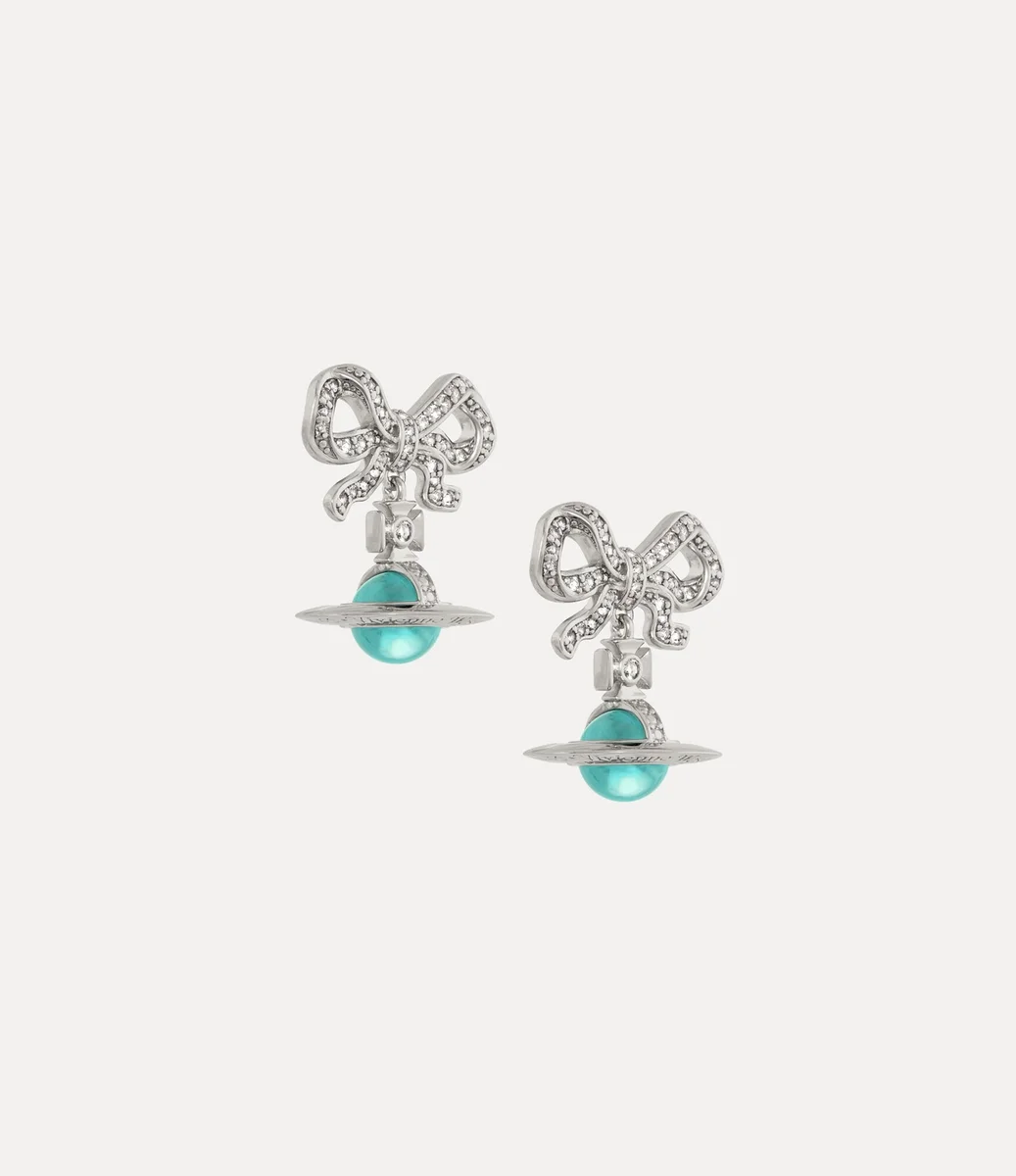 Vivienne Westwood Octavie earrings in recycled silver offer a polished, platinum-plated silhouette, adorned with glistening white and turquoise crystal details.