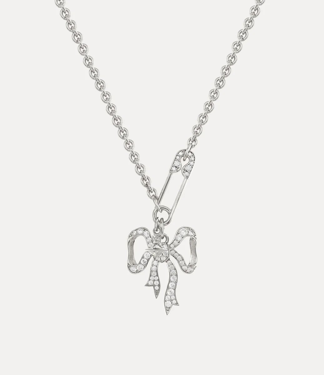 Vivienne Westwood Lilith Pendant necklace features silver-tone plating, complete with a bow and safety pin silhouette.