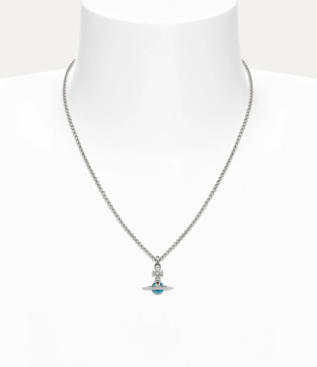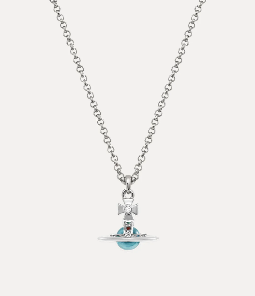 Vivienne Westwood silver-tone New Petite Orb Pendant necklace features a three-dimensional blue orb and is adorned with glistening multi-coloured crystals.