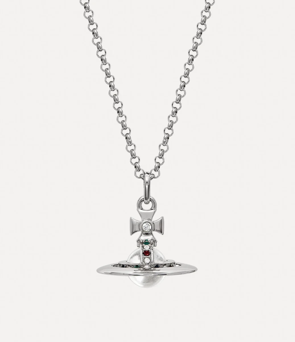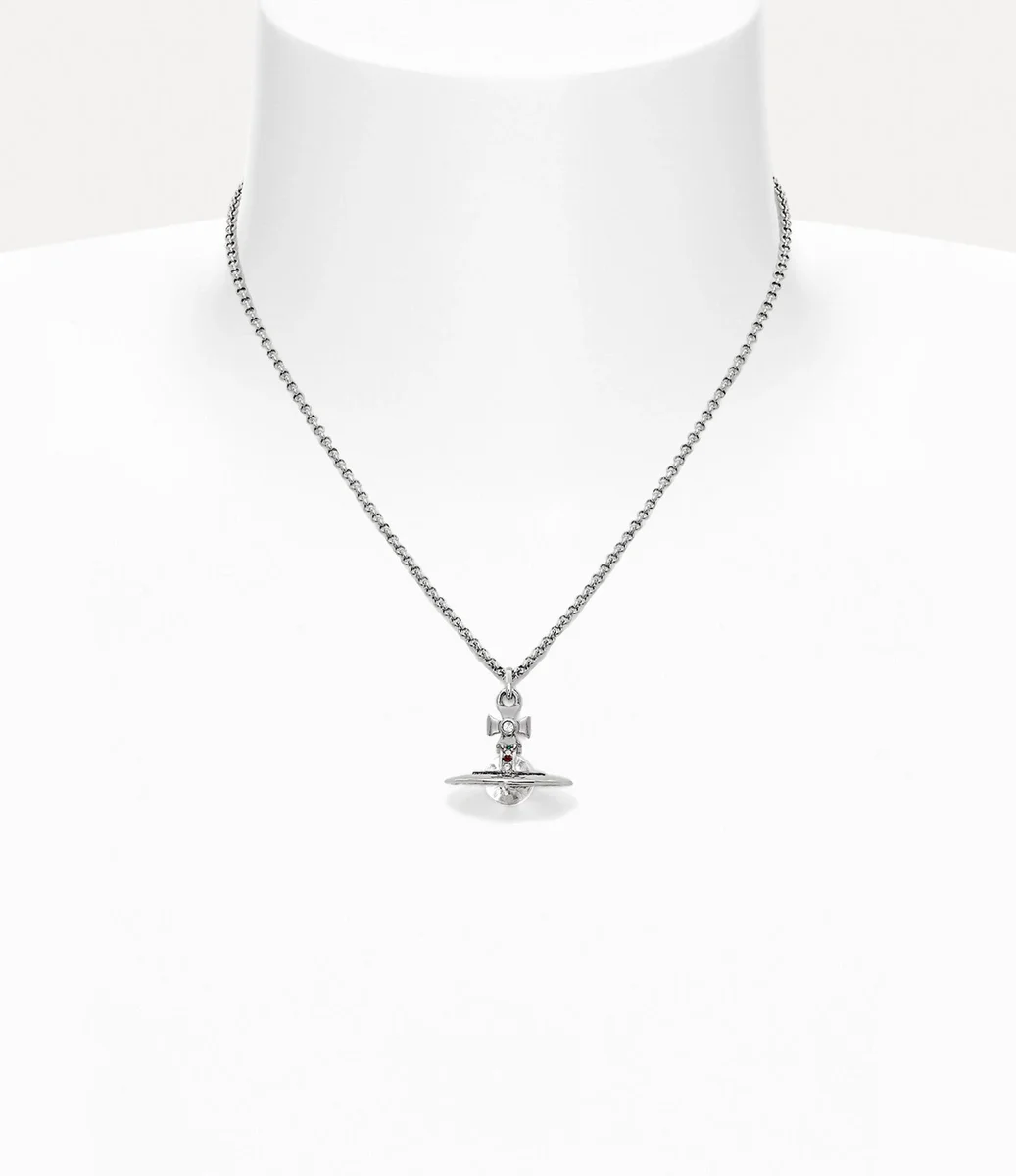 Vivienne Westwood New Tiny Orb Pendant necklace in silver tones features a central spherical glass gemstone that is complemented by a reliable lobster clasp.