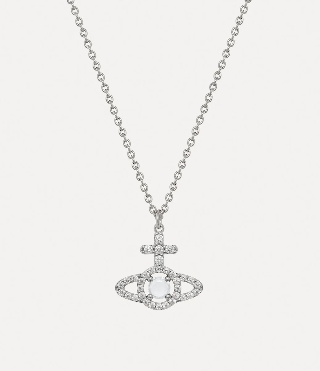 Inspired by the house’s timeless Olympia design, the Olympia Cubic Zirconia Pendant necklace features a large faceted crystal at its centre, framed by pavé-set clear stones that trace the orb silhouette. Suspended from a delicate trace chain, the piece is finished with an adjustable extender and secure lobster clasp.